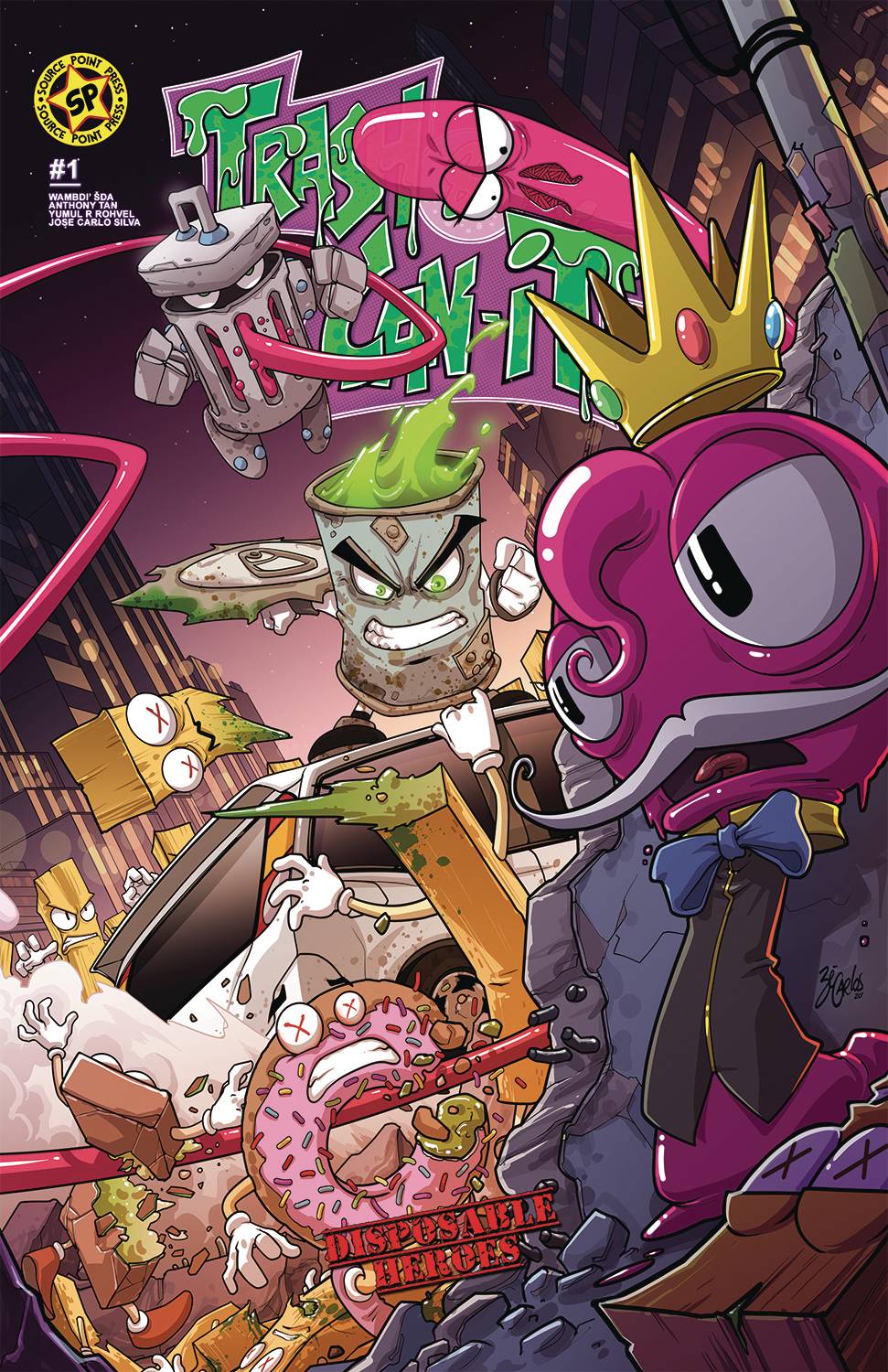 From Source Point Press this week comes Trash & Can-It #1 (of 4)! You don't have to go sniffing around very long to know that something in the Gumball Kingdom stinks... But when that stench of danger becomes too unbearable, two of the Kingdom's most Disposable Heroes are on the case, Trash and Can-It! Cover by Jose Carlos! $3.99