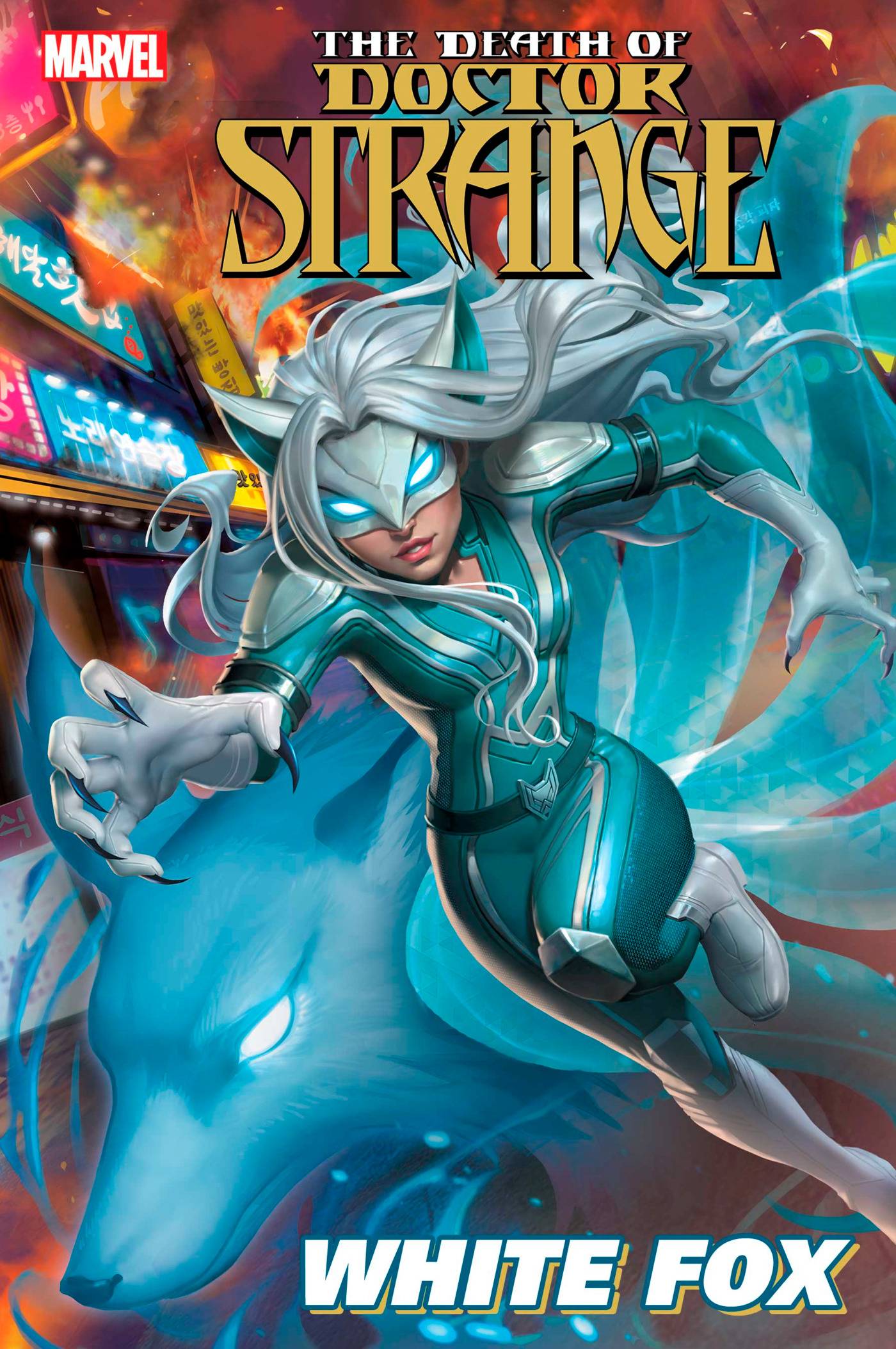 Next from Marvel comes Death of Doctor Strange: White Fox #1 (one-shot)! LAST OF HER KIND! LAST HOPE FOR EARTH! AMI HAN is the last of the mystical shape-shifting KUMIHO. As the WHITE FOX, she's defended Earth from every threat and proven herself again and again alongside the Agents of Atlas and Tiger Division. But the DEATH OF DOCTOR STRANGE will test her like never before. Something (or someone) is murdering innocents and the only suspect who fits the profile is White Fox! She'll have to clear her name and uncover the dark secrets from her mysterious origin while the very planet is under siege. Ami can have the answers she so desperately seeks, or she can save her friends. Guest-starring SWORD MASTER and TIGER DIVISION! Main cover by R1c0, variant by In Hyuk Lee, variant by Peach Momoko! $4.99