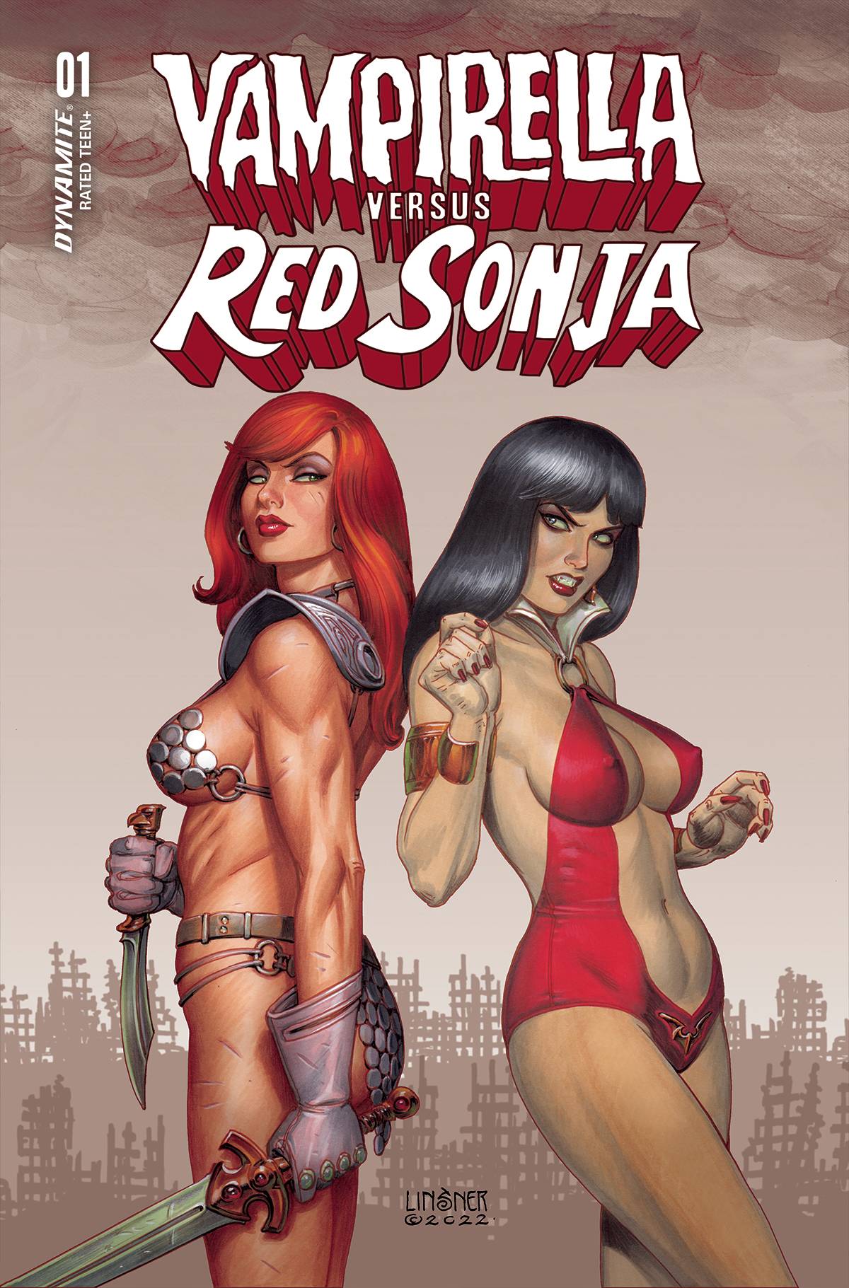 Vampirella Vs Red Sonja #1! It's a monumental clash of titans that had to happen, from master storyteller Dan Abnett! Both Vampirella and Red Sonja were recruited by the Project, a cosmic collection of superheroes sworn to protect all known universes. But Vampirella is now considered a murderous criminal - and she's capable of defeating any hero. Unfortunately for her, Red Sonja is no hero... It's a universe-spanning, action-packed battle royal from start to finish, by Dan Abnett (Dejah Thoris) and Alessandro Ranaldi (Jennifer Blood)! Cover A by Lucio Parillo, Cover B by Joe Linsner, Cover C by Joe Quinones, Cover D by Jae Lee, Cover E Cosplay, Cover F Blank. $3.99