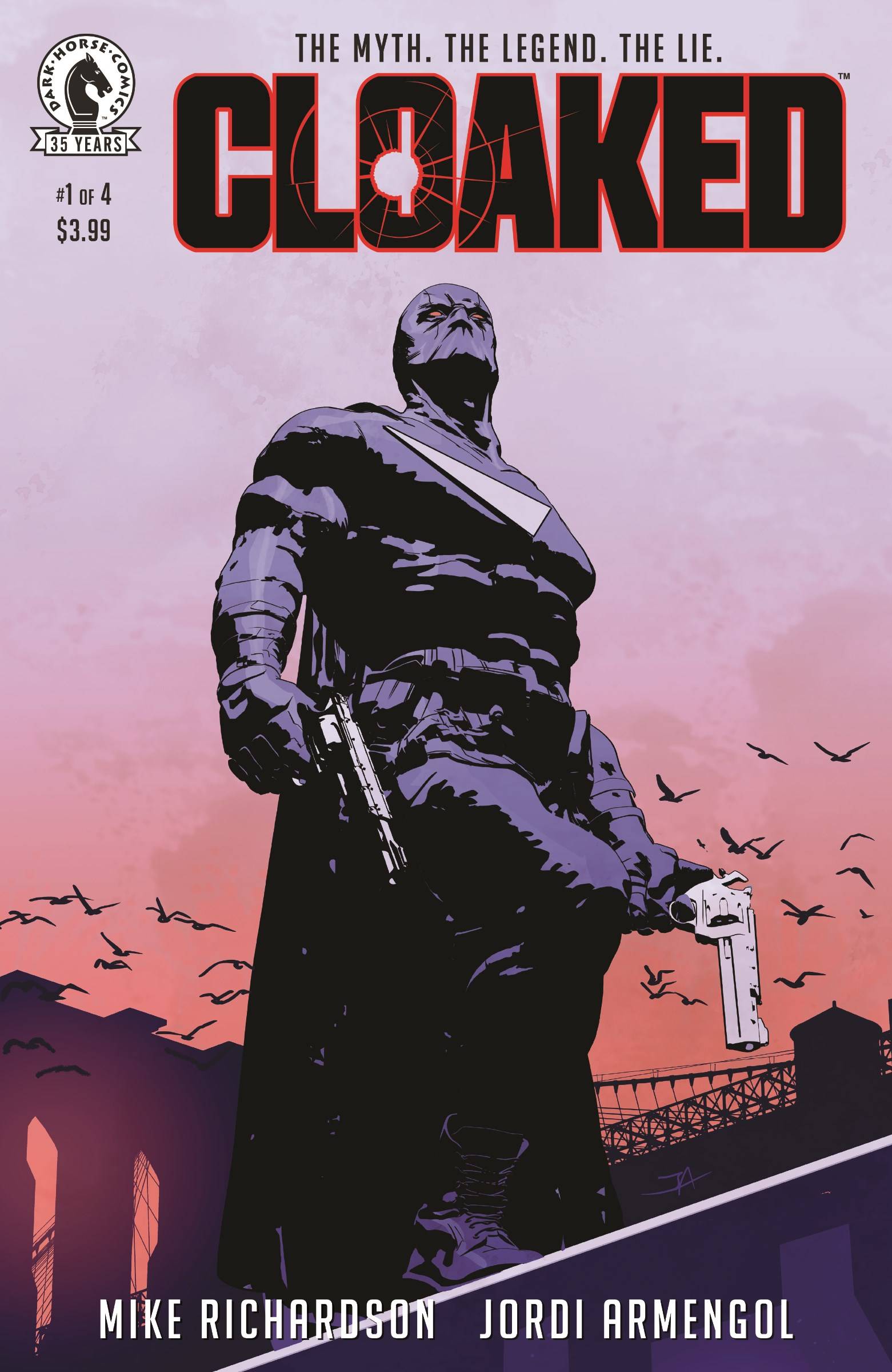 From Dark Horse this week comes Cloaked #1 (of 4)! Twenty-five years ago, a genuine masked hero came out of nowhere to declare war on crime. All of America celebrated the exploits of the black-clad vigilante as he took down one lawbreaker after another . . . and then he disappeared. But when down-on-his-luck investigator Jake Stevens is hired to find the long-missing dark avenger, his inquiries threaten to expose the myth behind the mask. Written by Mike Richardson-creator of The Mask, producer of the Hellboy film franchise, and writer of the 47 Ronin graphic novel-and illustrated with gritty realism by Jordi Armengol. Cover A and B by Jordi Armengol! $3.99