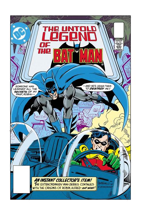Limited Edition: The Untold Legend of the Batman #1! From comics legends Len Wein, Jim Aparo, and John Byrne comes this haunting and introspective tale that puts all of the Caped Crusader's detective skills to the test. When the original Batsuit worn by Bruce Wayne's late father is stolen from the Batcave, Batman begins an investigation into the possible culprit, which leads him to recollect the origins of close allies, such as Robin and Alfred--and foes like Joe Chill and The Joker! This special edition reprint collects all three issues of the limited series.