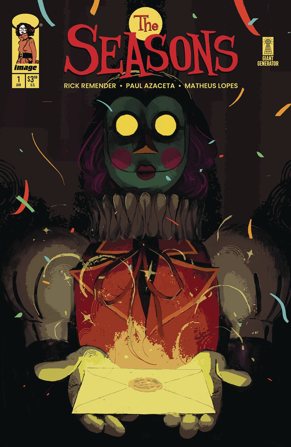 Seasons #1! Come one, come all, to the amazing new big top show! Your Ringleaders, Rick Remender and Paul Azaceta, invite you to this fantastical double-length premiere issue of their new ongoing series! A decade after the Seasons sisters' beloved parents disappeared, a wicked carnival arrives in town. Within its big tent is a dazzling show led by an eldritch ringleader who offers comers-all a window into their heart's every desire-provided they each leave a piece of themselves behind... Attendees arrive to enjoy the breathtaking entertainment obscured behind its canvas folds-and they leave distracted by the glint of these cursed mirrors. Now it's up to the often-overlooked youngest sister, Spring, to find her missing sisters and put a stop to the Faustian hold the carnival and its cursed mirrors have on its guests. But will she be able to piece her shattered family back together before it's too late for them all?