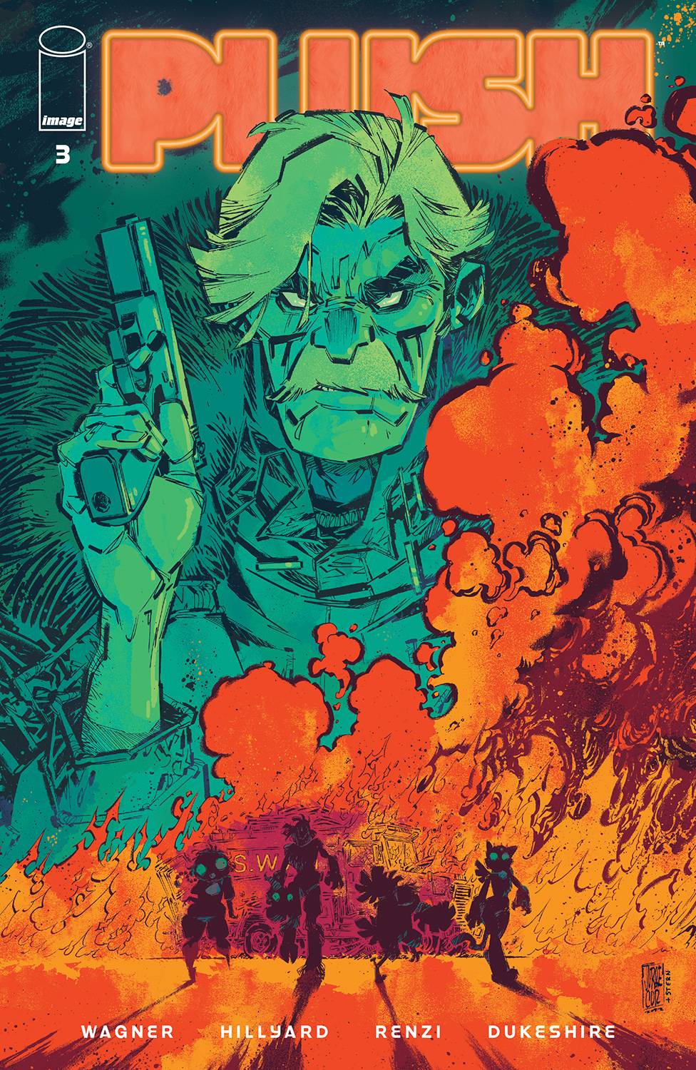 Plush #3 (of 6)! ROAD TRIP! The cannibalistic furries have abducted Devin away on a fiery SWAT van road trip to visit the group's creepy mansion of horrors. Keebler drives and Scratch rides shotgun as Kasha and Devin argue whether he's suitable enough to eat or not. Cover A by Dan Hillyard, Cover B by Tony Fleeces, Cover C by Jorge Corona. $3.99