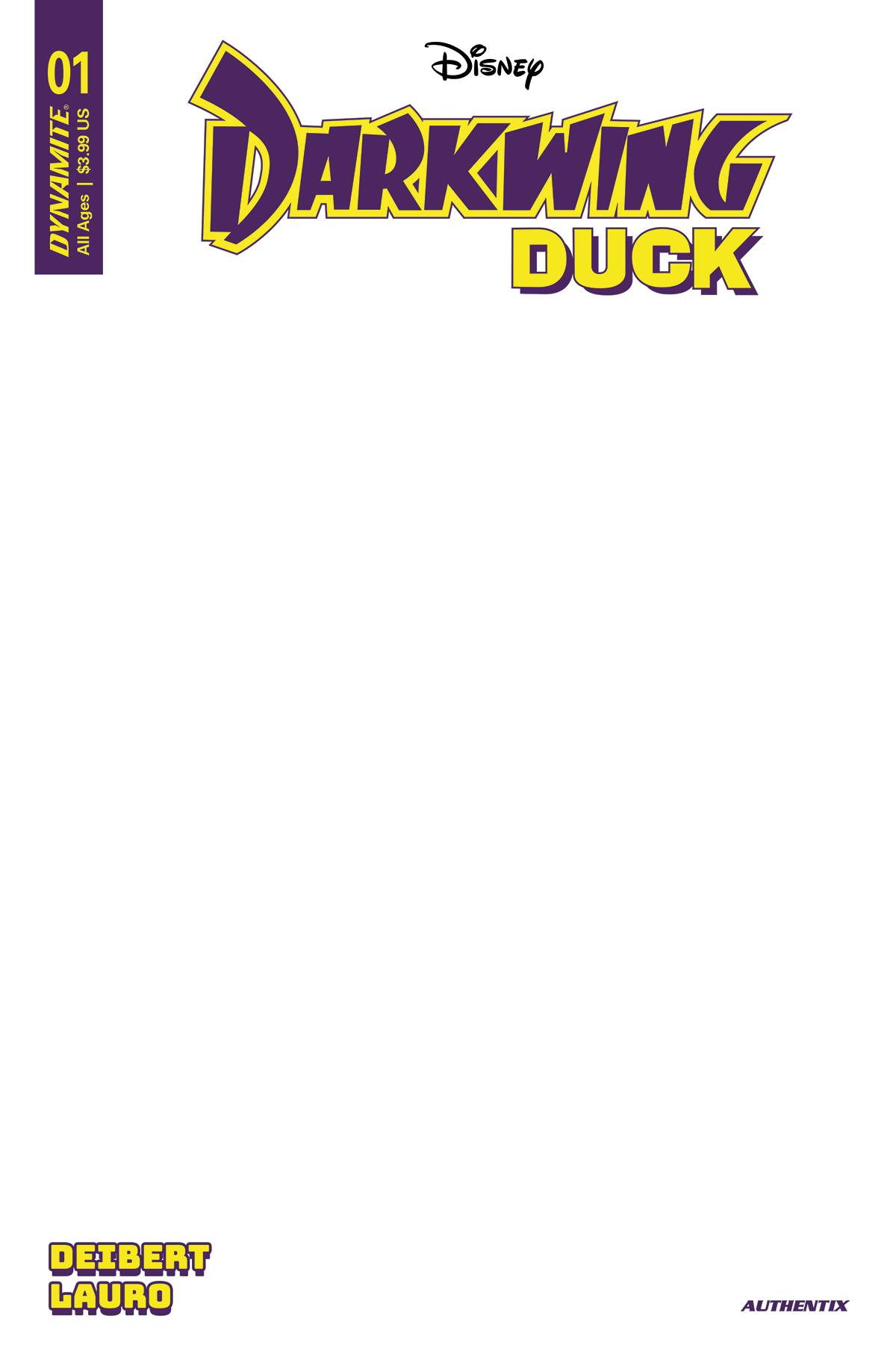 Darkwing Duck #1! He is the terror that flaps in the night...He is the ferocious fowl who plucks the evil eye from the face of foul play...He is Darkwing Duck! Alongside his trusty sidekick Lauchpad McQuack, Darkwing hyper-vigilantly defends St. Canard from the dastardly, devilish demons who would wage wanton war! By night, our caped defender lurks in the shadows, striking fear (and maybe confusion?) in the heart of the criminal underworld...but by day, no one suspects that Darkwing is also mild-mannered Drake Mallard, a well-meaning father to his adorable adopted daughter, Gosalyn! Can Darkwing successfully navigate his two separate lives, all while looking incredibly cool and impossibly handsome? (Hint: Probably not, but...) You'll have to read to find out! Cover A by David Nakayama, Cover B by Mirka Andolfo, Cover C by Leirix, Cover D by Trish Forstner, Cover E by Jacob Edgar, Cover F Purple Blank, Cover ZA by Cat Staggs, Cover ZB by Ken Haeser, Cover ZC Orange Blank, Cover ZD Blue Blank, Cover ZE White Blank. $3.99