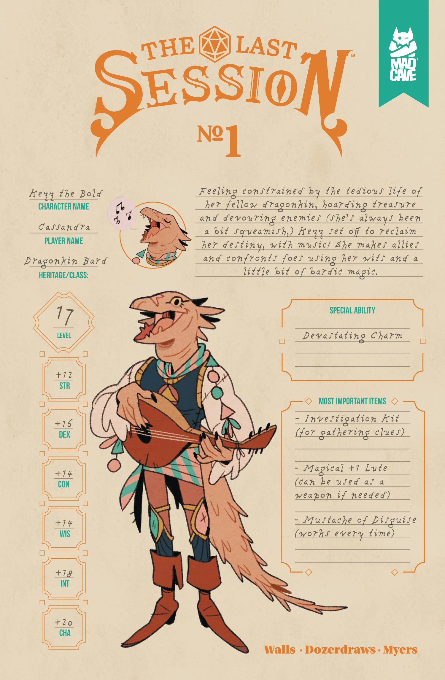 From Mad Cave this week comes The Last Session #1! Roll for initiative! Jay, Lana, Drew, Walter, and Shen have played Dice & Deathtraps together since high school. Now, on the verge of graduating college and scattering, they've decided to finally complete their unfinished first campaign. But when Jay's partner Cassandra joins as a new player, Lana's afraid the party won't ever finish their quest...Cover A and B by Dozerdraws!