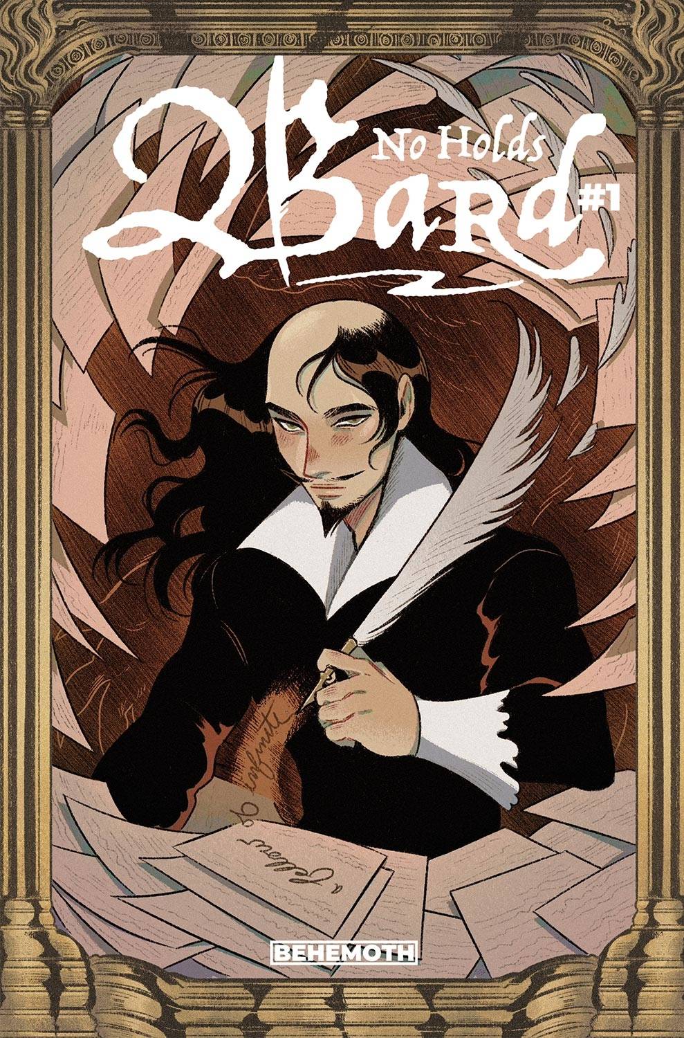 From Behemoth this week comes No Holds Bard #1 (of 6). When Queen Elizabeth I is kidnapped, only the dramatic duo of William Shakespeare and William Page in their superhero alter-egos, THE BARD and PAGE can save her! Written in iambic pentameter, No Holds Bard is a throwback comedy adventure 400 years in the making. Cover A by Logan Faerber, cover B and C by Gabrielle Kari, Cover D by Joe Quinones, Cover E by Dave Kloc! $3.99