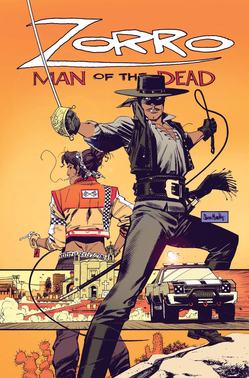 Zorro Man of the Dead #2 (of 4)! Don Quixote meets Narcos in Sean Gordon Murphy's Zorro: Man of the Dead. In this modern reimagining, the writer-artist behind DC Comic's Batman: White Knight, delivers a fresh take on the legendary swashbuckling hero. Zorro has returned! Well, kind of. Diego has shown that the spirit of Zorro flows through him and has left a trail of ne'er-do wells in his wake. But now Rosa must try to save her brother who believes he is the protector of La Vega, as El Rojo will certainly be hunting for the legendary Zorro now. But Diego isn't going anywhere without Bandido. Hop in Rosa's El Camino, and prepare for the next swashbuckling chapter in Sean Murphy's electric story of the man in black.
