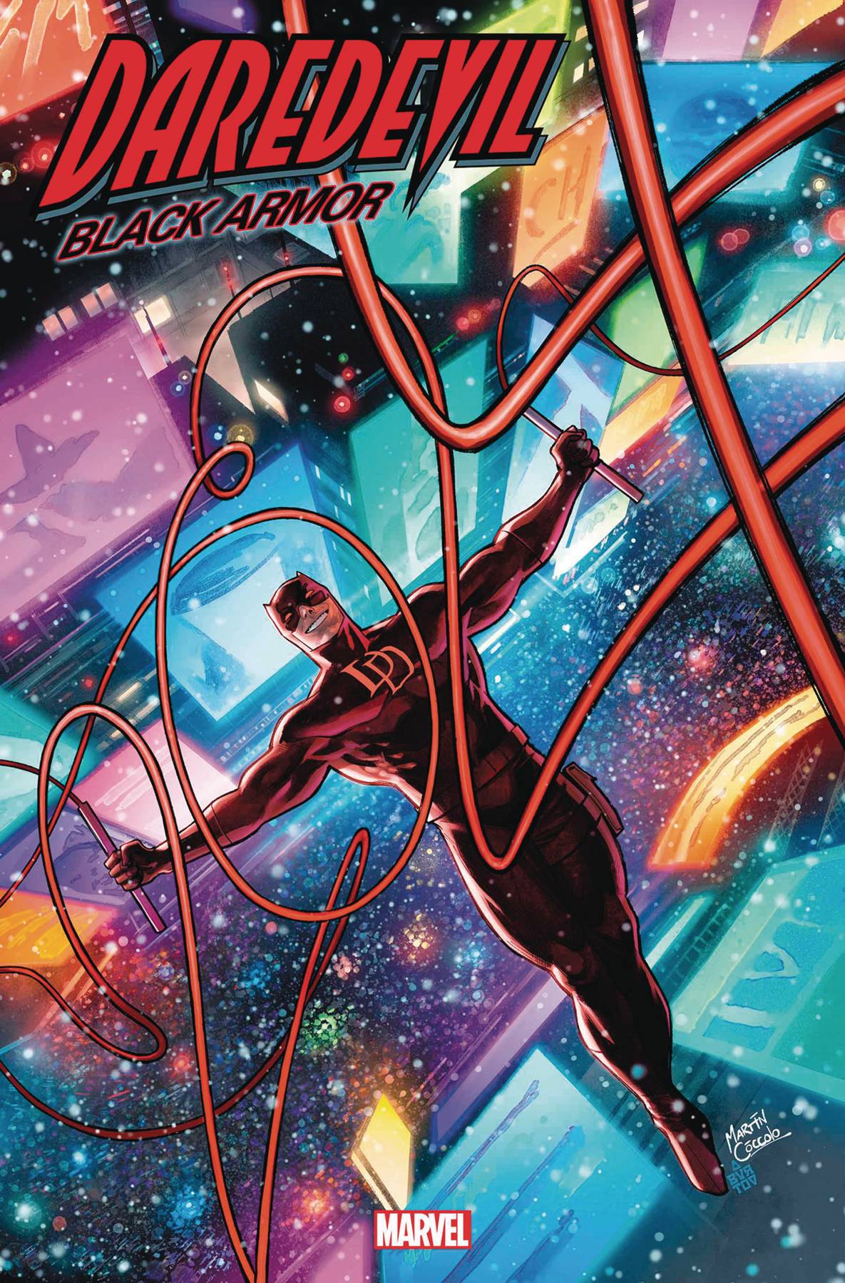 Daredevil Black Armor #2! BACK IN BLACK! MATT MURDOCK will need to push his extraordinary senses and his armored suit beyond their limits if he hopes to even stand a chance against what's coming. HOBGOBLIN, KINGPIN and even the AMAZING SPIDER-MAN come to call! Plus, a mysterious foe whose powers trump them all! D.G. Chichester returns to Hell's Kitchen to spin an all-new DAREDEVIL story set during his landmark run with the character! Joined now by rising star NETHO DIAZ and with covers by industry legend MARK BAGLEY!