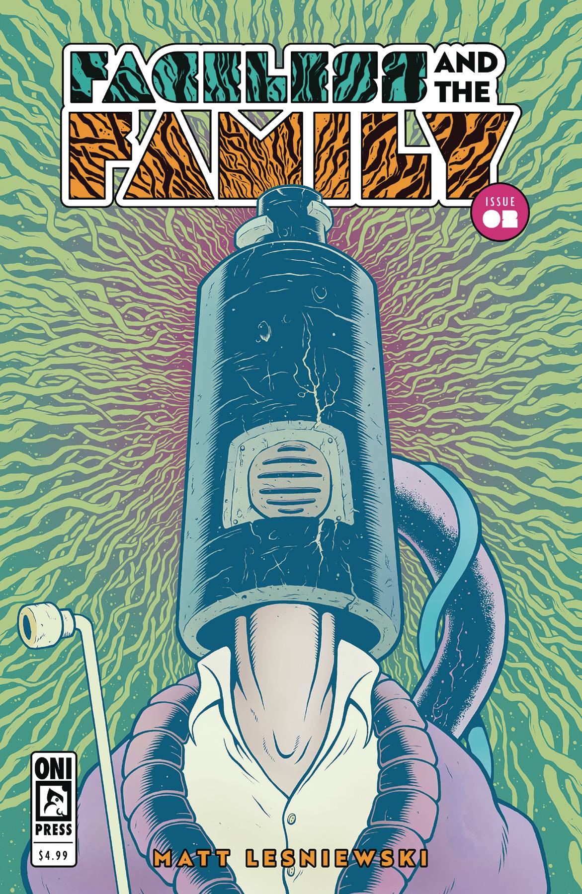 Faceless and the Family #2! The must-read experience in visionary comics storytelling continues! From the distorted imagination of Eisner nominated writer and artist Matt Lesniewski (Mind MGMT Bootleg) comes the next epic chapter of this soon-to-be graphic classic! On a quest to reclaim the face he sacrificed to a troubled past, the man called Faceless and his new band of friends and followers are on a quest to the Hand Planet's most notorious metropolis: Pinky Town! (It's not our fault you haven't heard of it yet!)!