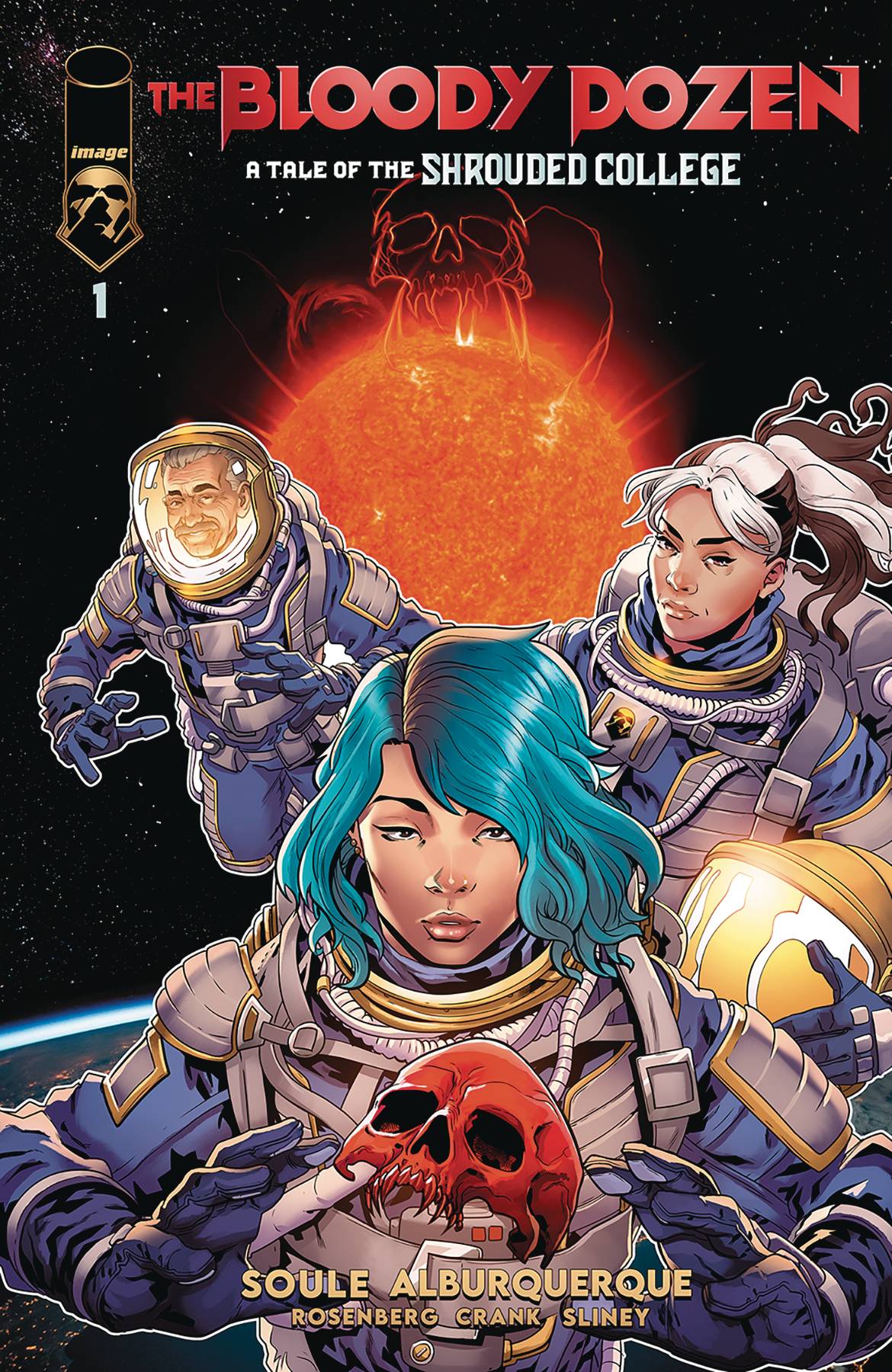 Bloody Dozen Shrouded College #1 (of 6)! MINISERIES PREMIERE SPACE VAMPIRES! In this new installment of THE SHROUDED COLLEGE, CHARLES SOULE and WILL SLINEY's supernatural horror-adventure saga, three down-and-out astronauts are tasked with the ultimate heist-breaking a group of deadly vampires out of a space prison orbiting the Sun. Apollo 13 meets Blade in this killer thriller!