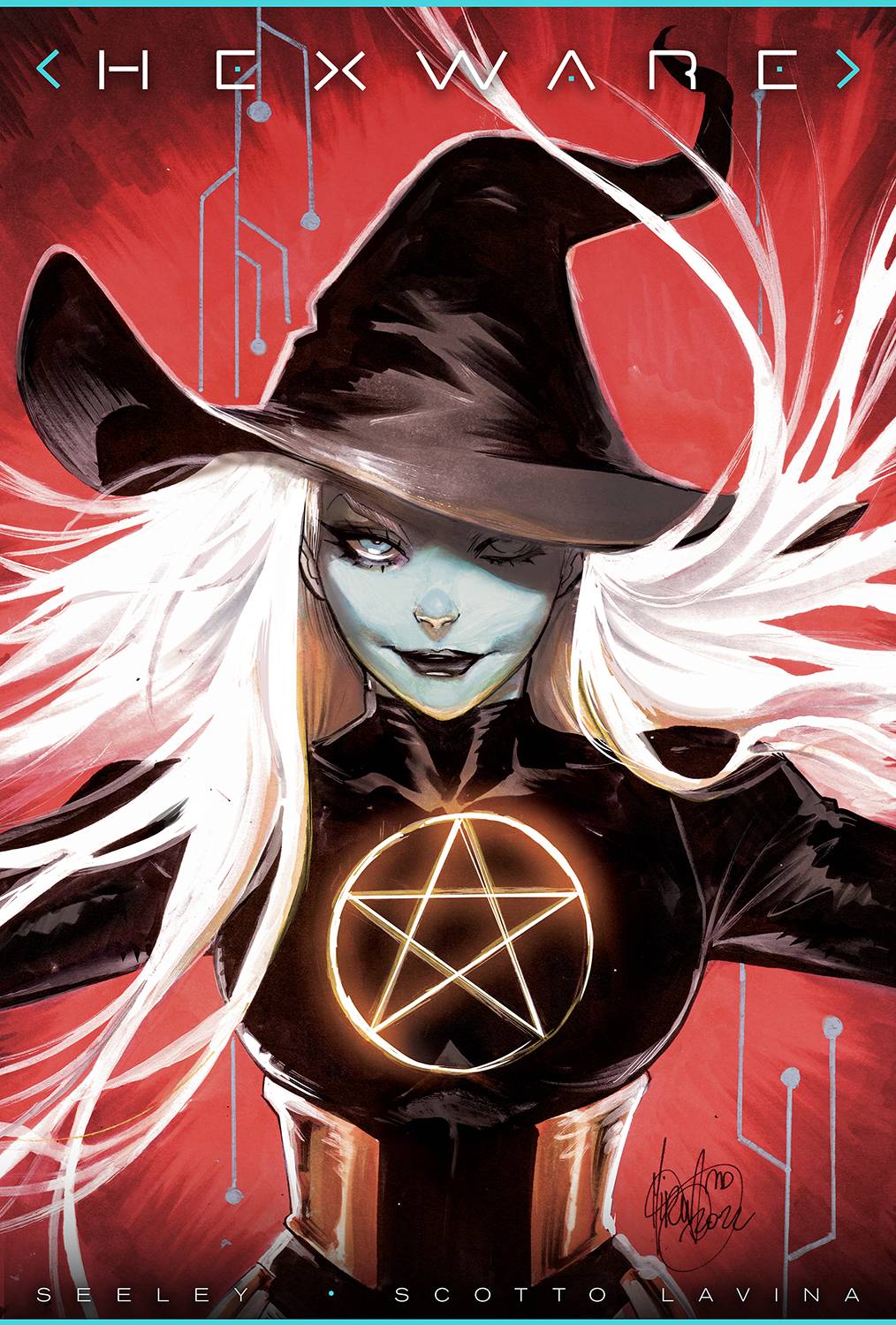 Hexware #1 (of 6)! Why sell your soul...when you can buy a new one? In a corporate-ruled world where class inequality is greater than ever, a desperate, lonely populace is drawn to neo-spiritualism and hedge magic. When their teenage daughter is murdered, the Marks family is left asking the gods what they did to deserve this. But their android maid, Which-Where, has a different approach. Perhaps if she asked the devil… A new futuristic miniseries by acclaimed creator TIM SEELEY (HACK/SLASH, REVIVAL, Nightwing, Superman vs. Lobo) and rising star ZULEMA SCOTTO LAVINA (Red Sonja, The Little Mermaid)! THE MAGIC ORDER meets Do Androids Dream of Electric Sheep? in this dark mashup of witchcraft and sci-fi. Cover A by Zulema Lavina, Cover B by Tim Seeley, Cover C by Mirka Andolfo. $3.99