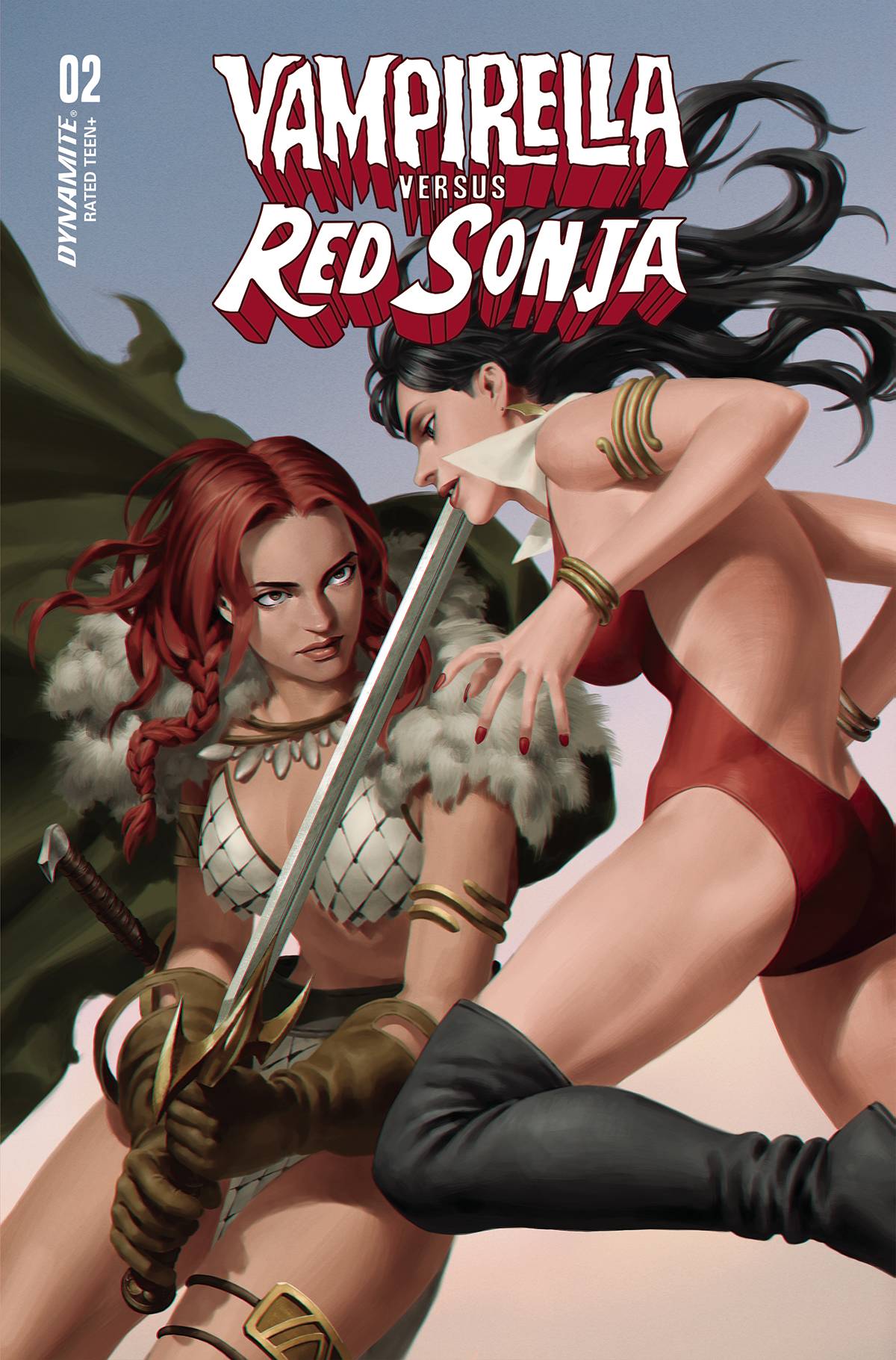 Vampirella Vs Red Sonja #2! Battle lines are drawn! Vampirella recruits her team of Dark Powers to stand against Red Sonja's Superpowers. The stakes of their battle could tear The Project's entire infrastructure apart at the seams. But neither side is willing to give way, and so there will be a reckoning...Cover A by Lucio Parillo, Cover B by Joe Linsner, Cover C by Jung-Guen Yoon, Cover D by Jae Lee, Cover E Cosplay. $3.99