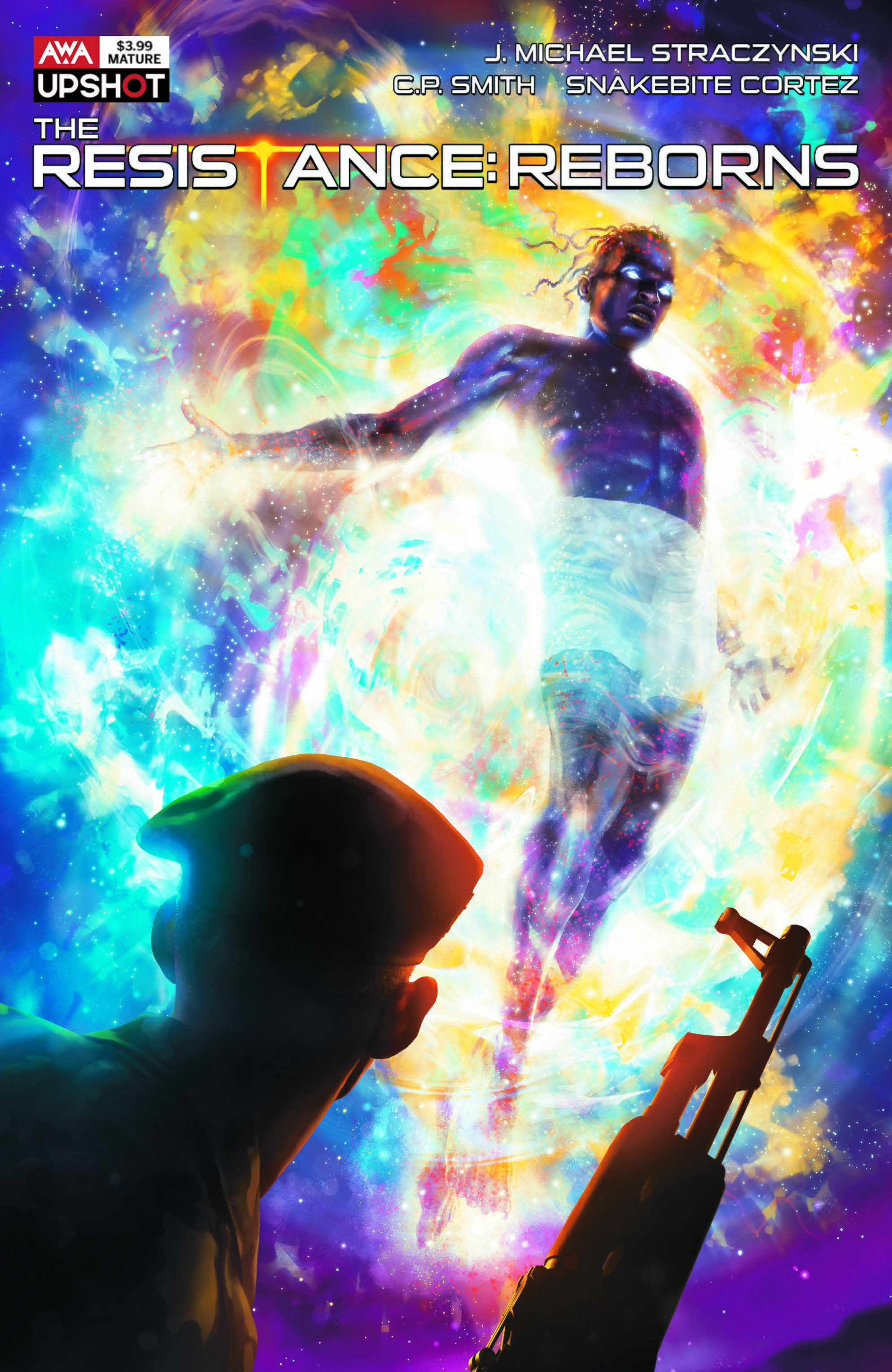 Next from AWA this week comes Resistance: Reborns #1 (one-shot). Stemming from the pages of the hit series, The Resistance, The Resistance: Reborns explores the origins of the newly superpowered humans after a global disaster leaves hundreds of millions dead in its wake, causing a few thousand to suddenly manifest superhuman powers. This special collection explores the origins of five characters in this new universe of heroes and villains including The Mad, the Dangerous, The Hidden, The Lost, and The Transcendent. Writer J. Michael Straczynski (Thor, The Amazing Spider-Man) returns to the world of The Resistance, this time joined by artist C.P. Smith (Archangel 8). Main cover by Razzah, variant cover by Mike Deodato Jr.