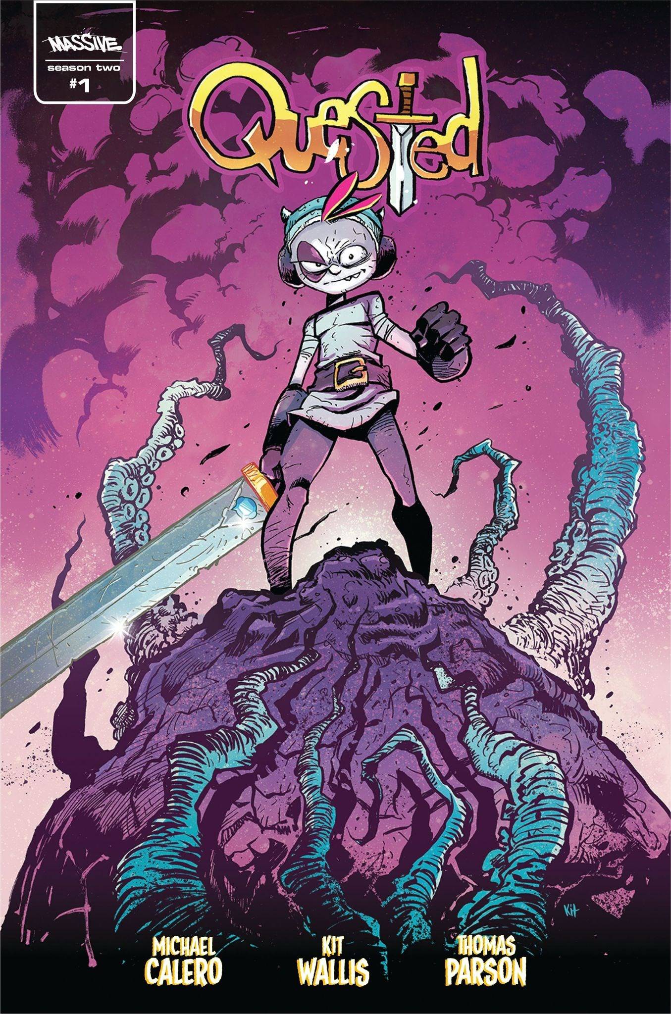 Quested Season 2 #1! The misadventures continue in a brand new season of Quested by writers Michael Calero (Alpha Betas, Sumerian's American Psycho) and Thomas Parson, with art by Kit Wallis (Good Boy, Mr.Easta). All hell breaks loose in the land of Faerbraun as Jinx embarks on an epic journey through the Underbraun with an unlikely companion. Pursued by his former right hand man Hamo, it's a race against time as Jinx attempts to save his father, the mythic hero Lothar. While the two comrades face off in the land of the dead, only Lithia remains to defend Faerbraun from the dire effects of opening the door to the underworld.