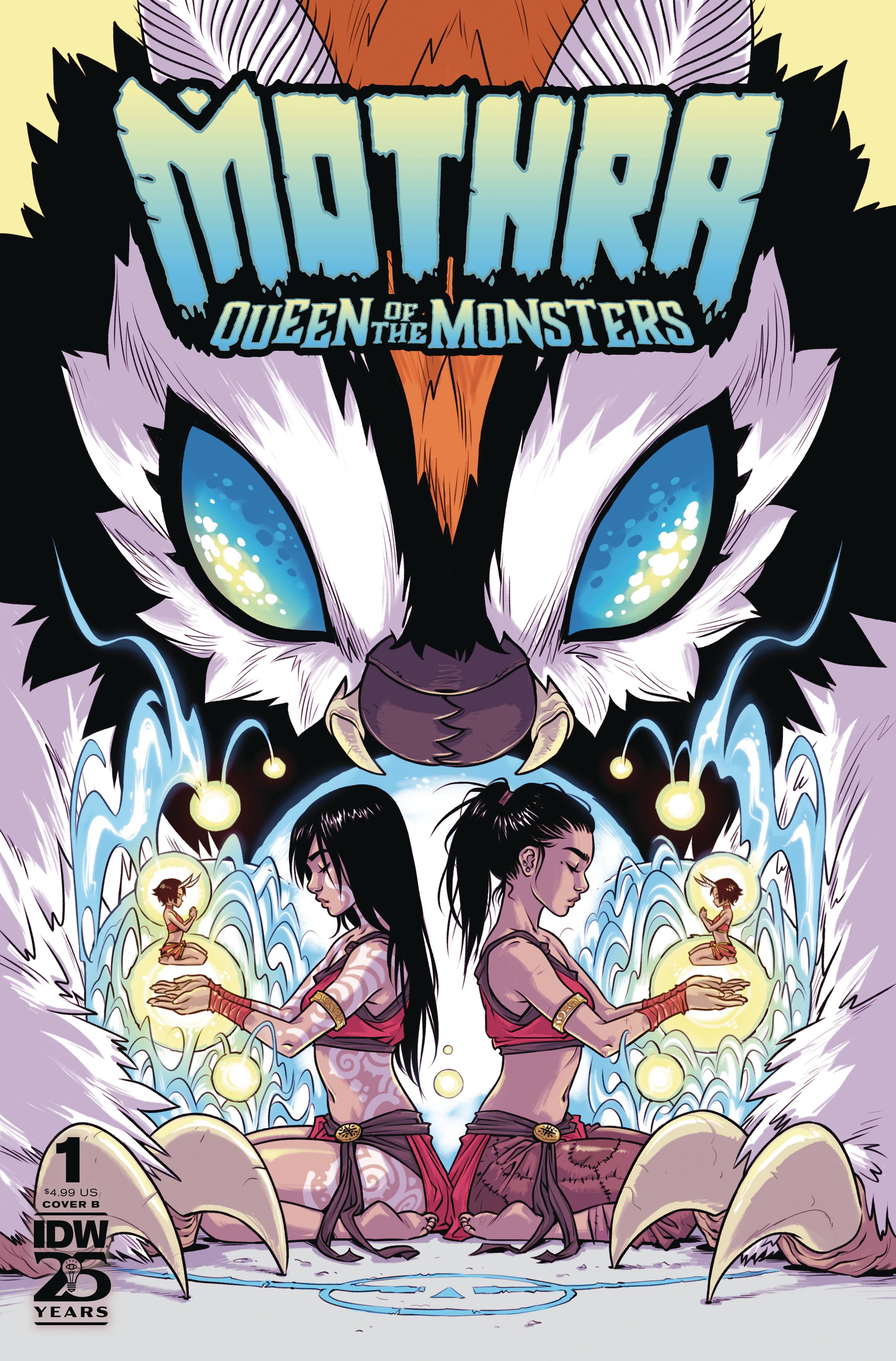 Mothra Queen of Monsters #1! Mothra has fallen after a fearsome battle with a terrifying new kaiju, Antra. Without its protector, the world has entered into a state of desolation. Kaiju roam freely, and what remains of humankind has been forced into hiding.But all hope is not lost! Mira is a young woman living in the wasteland, who believes she lost her entire family in Mothra's final stand. That is, until her missing twin shows up at her door with two fairies! If her sister is to be believed, Mira might hold the key to the rebirth of Mothra and the Earth's return to normalcy. They just have to travel back in time and get its egg from the Jurassic period first.