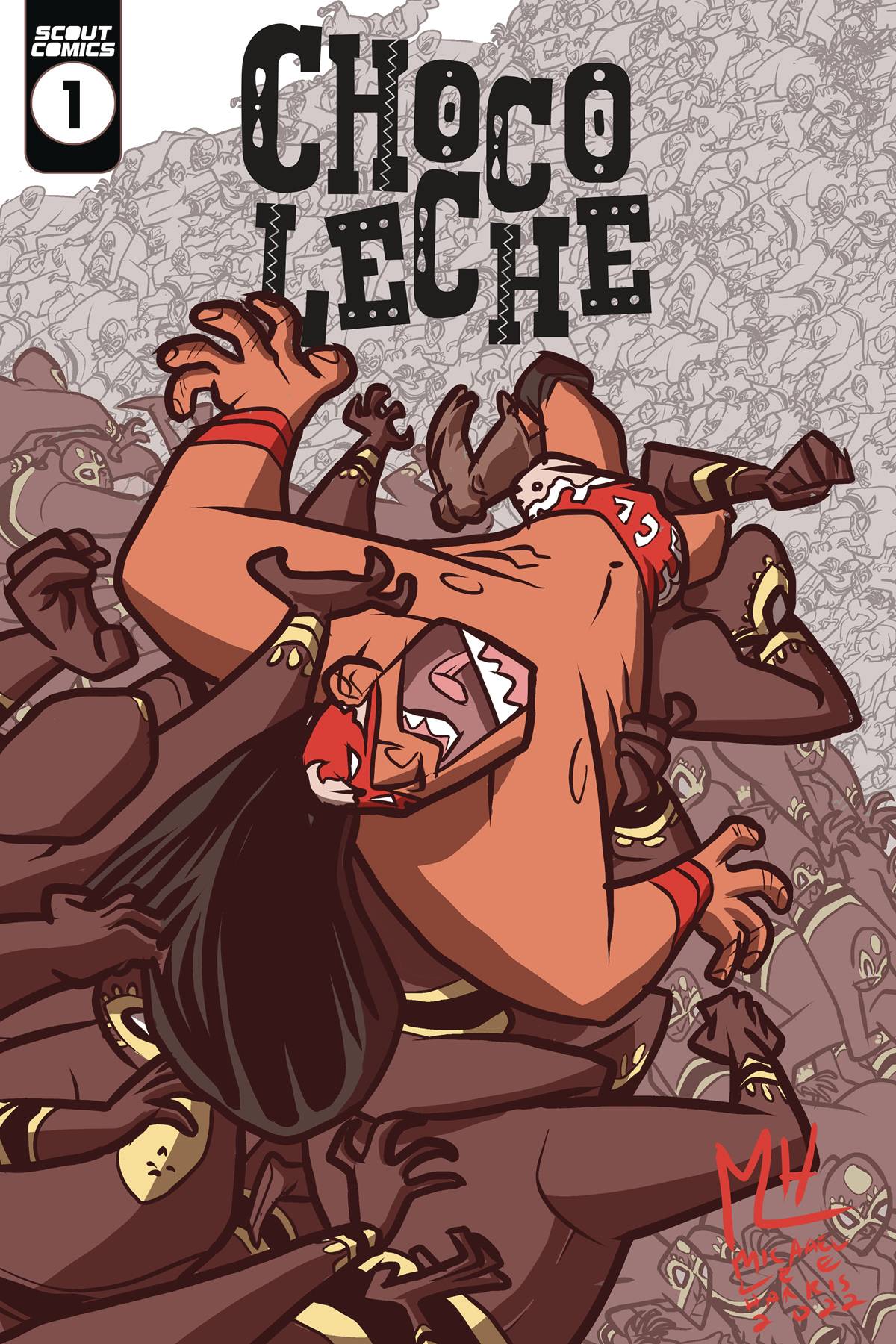 Choco Leche #1! When the son of the most famous luchador in Slam Juan is put in a coma, the Choco Leche team must begrudgingly come back to find the person responsible... while saving the city from a giant bedpan monster! Written and drawn by Lee Harris!