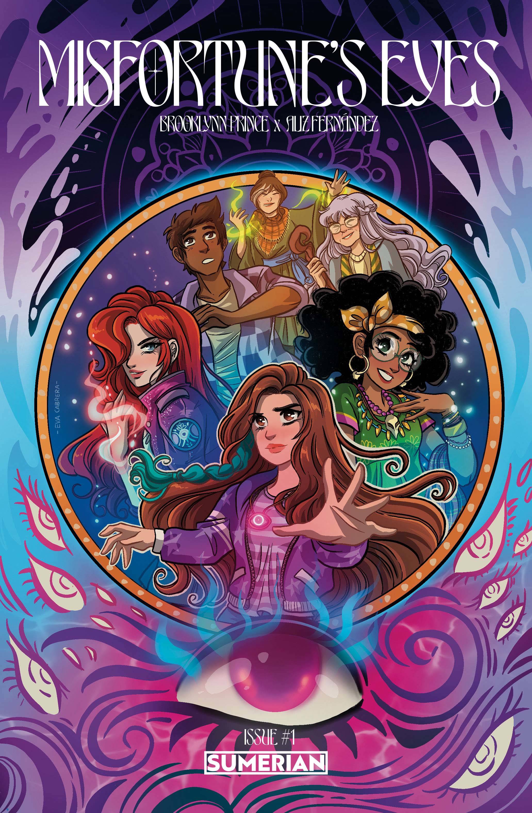 Misfortunes Eyes #1 (of 4)! Double-Sized debut issue from Critics' Choice Award Winning Actress, Brooklynn Prince (The Florida Project, Cocaine Bear, The Marsh King's Daughter) comes this limited series full of excitement! A teen girl wakes up to discover she can see human auras. While embarking on a journey to find what her future may hold, she uncovers a hidden Psychic Town. There, she will soon learn about her mother's troubled past, her own curse of predicting death, and unearth the immense darkness coming for the town, and her own family.