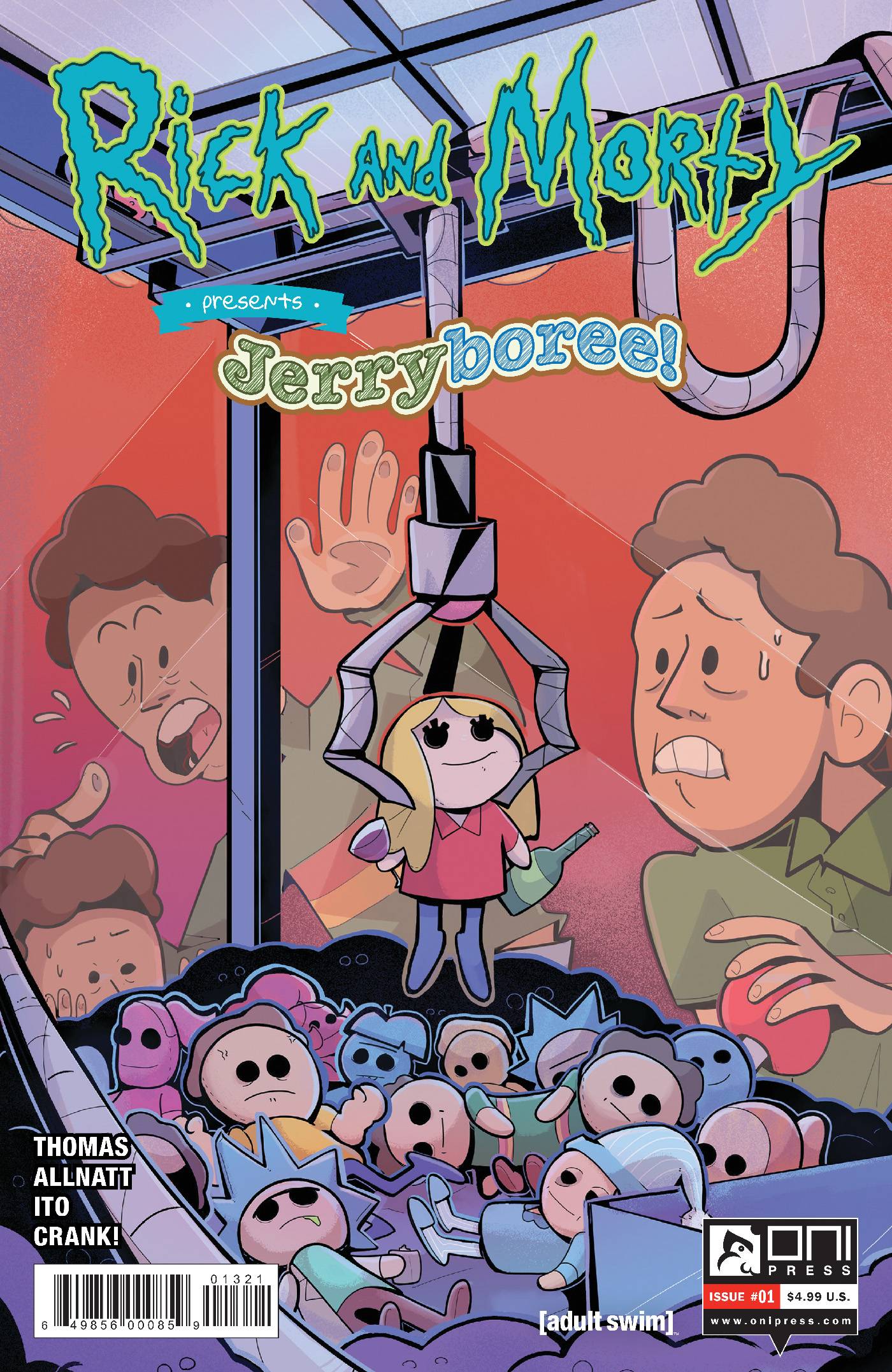 Next from Oni this week comes Rick & Morty Presents Jerryboree #1 (one-shot). It's a field trip! The multitude of Jerry's at the Jerryboree day care center take a trip to the most out of this world arcade in all of the multiverse BLIPS N'CHITZ!! The most hapless men in any dimension face to face with the bleeding edge of arcade technology - what could go wrong? Cover A by Gina Allnatt, Cover B by Kaycee Campbell.