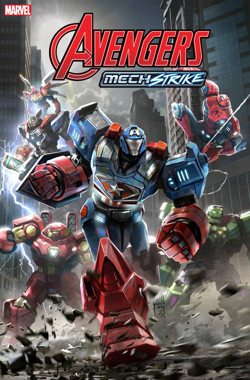 Avengers Mech Strike #2 (of 5). The Biomechanoid menace is growing exponentially, and the only line of defense for the Earth? The Avengers! While the team scrambles to fight Biomechanoids across the globe with the aid of their new mech suits, Iron Man and Black Panther try desperately to uncover the hidden enemy behind this new global crisis. But when they do, they realize that the threat is far greater than they had previously imagined... and the fate of the Earth hangs in the balance. Cover A by Kei Zama, variant by Jarold Sng.