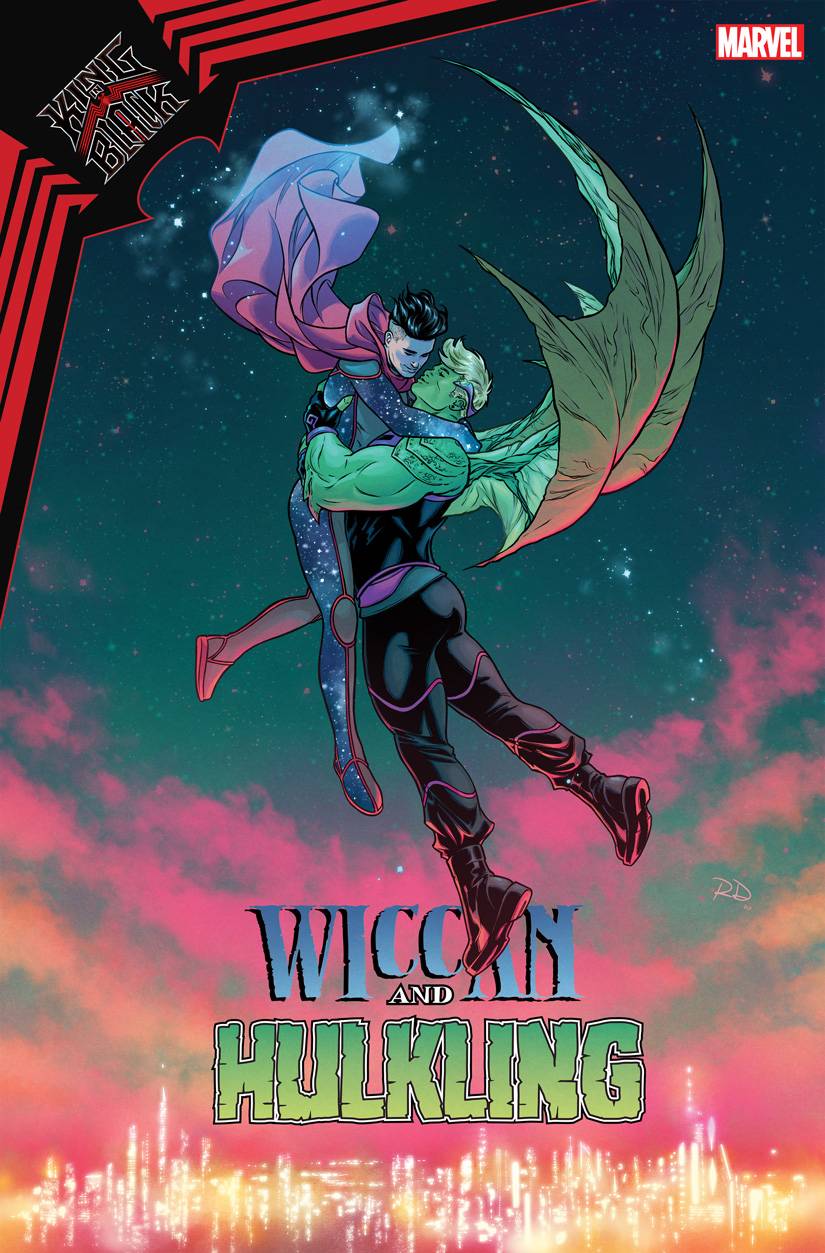 Next from Marvel comes King In Black Wiccan Hulkling #1 (one-shot). NO TIME TO CELEBRATE! Wiccan and Hulkling are freshly off the marriage altar and overdue for a proper celebration. So when the Shi'ar invite them for an all-expenses paid vacation at their glitziest beach resort, you know Wiccan's already got their bags packed. But they'll have to hold the champagne - because Knull and his symbiote army are expanding across the galaxy! Tini Howard and Luciano Vecchio give everyone's favorite Young Avengers a honeymoon to die for! Cover A by Jim Cheung, variant by Russell Dauterman, variant by Peach Momoko! $4.99