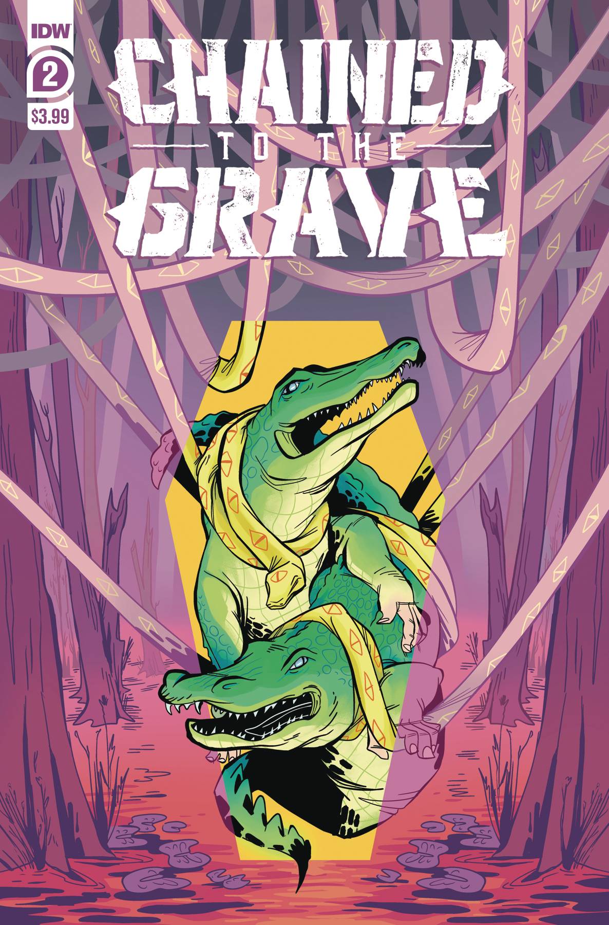 Chained to the Grave #2 (of 5). Outlaw Roy Mason has come back from the dead, chained to the headstone that marked his grave. On the trail of buried gold and hunted by a Big Bad, Roy struggles to hold his family-and his body-together. Writers Brian Level & Andrew Eschenbach (Darth Vader, Thanos, Deadpool) and artist Kate Sherron (Invader Zim, The Amazing World of Gumball) bring you a tale of intrigue, murder, magic, and the good ol' wild, wild west!