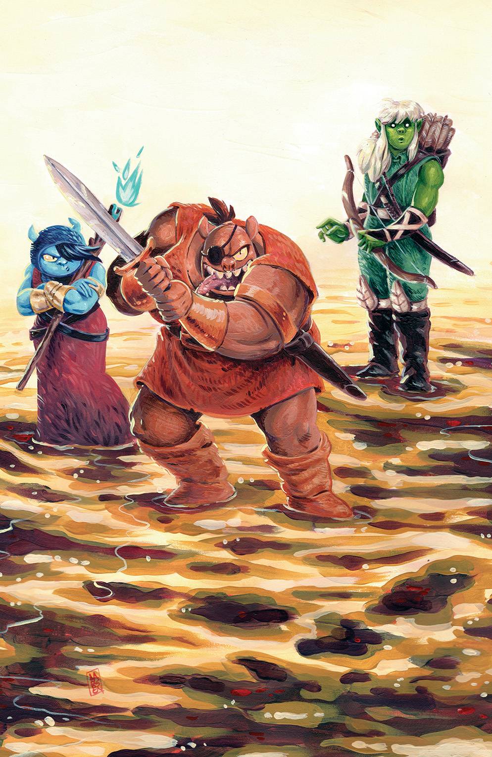Orcs #2 (of 6). After getting into trouble with the fearsome squirrels of the Eerieasallhel forest, Bog, Zep, Pez, Utzu and Gurh are in for a fight for their lives against the tiny (but territorial!) beasties. Then it's back home to get even with King Hrogragah for sending them on a fool's errand! Plus, there's something weird about their haul, it might be something more exciting than just acorns... it's just too bad it might get them kicked out! Main cover by Christine Larsen, variant cover by Sweeney Boo!