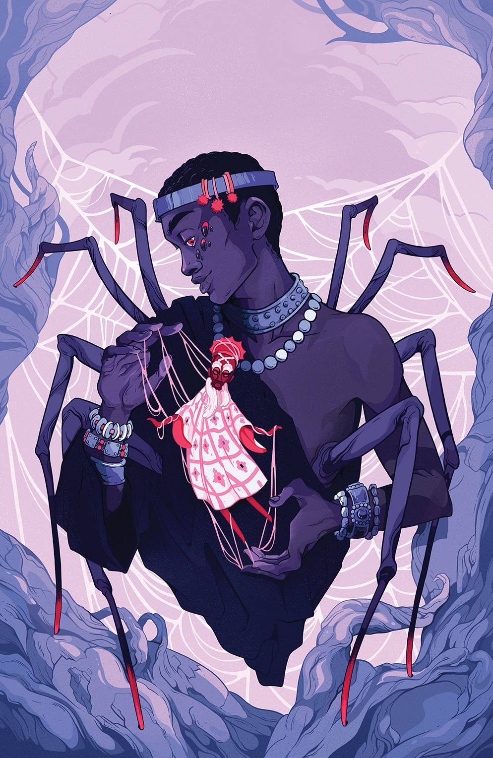 From Boom Studios this week comes Jim Hensons Storyteller Tricksters #1 (of 4). The Storyteller and his faithful dog take shelter one night from a storm, when the dog becomes scared of a large spider who is also occupying the shelter. Now, discover the story of Anansi, the spider-god, and his quest to free all stories from his father, the sky god Nyame. But when Anansi becomes the keeper of all stories, he hordes them until his son confronts them to free the knowledge that could change the world! Jonathan Rivera (Cave Carson Has a Cybernetic Eye) and Jade Zhang begin the next Jim Henson-inspired epic limited series here, with a different acclaimed creative team on each issue! Main cover by Peach Momoko, variant by Dani Pendergast, blank sketch cover.