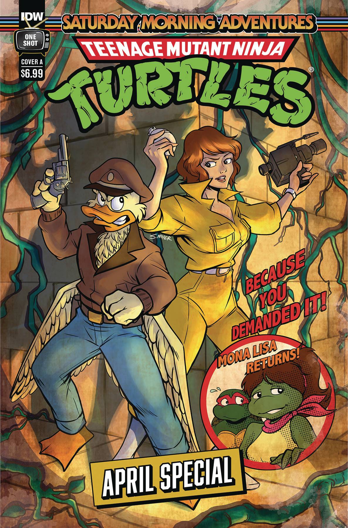 TMNT Saturday Morning Adventures April Special #1 (one-shot)! What better month to have a special dedicated to the Teenage Mutant Ninja Turtles' favorite journalist in a jumpsuit? Shredder's been stranded after his plan to acquire a new Technodrome backfired on him, but April still finds herself in a serious situation with the heroes in a half-shell nowhere in sight! Luckily, April doesn't have to adventure alone, as Ace Duck makes his debut, seeking hidden treasure in the Lost Temple of Avila! This adventure will be newsworthy and that's no April fooling! Also, because you demanded it, this 40-page issue features the return of another very special mutant: Mona Lisa!