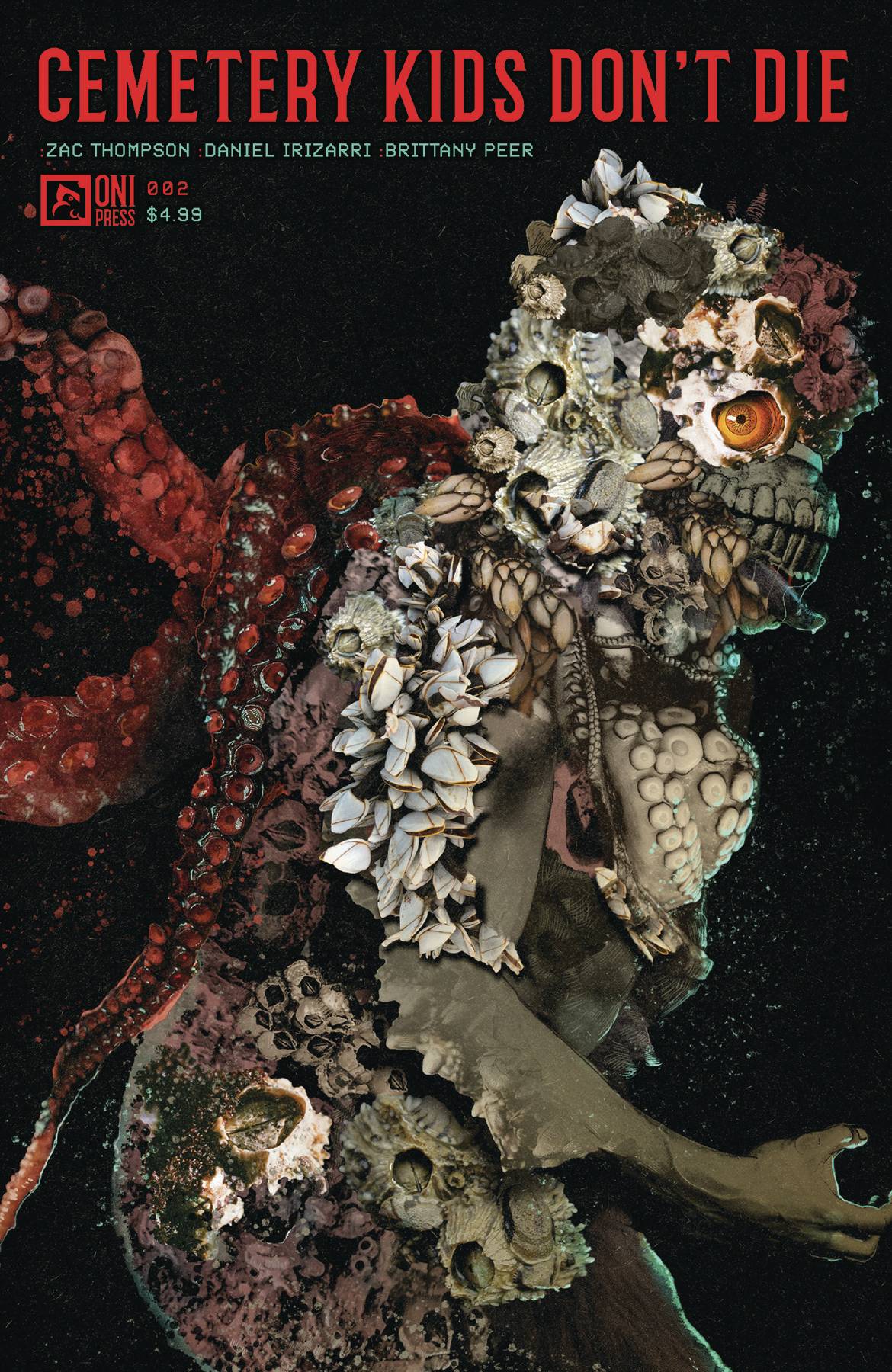 Cemetery Kids Dont Die #2! Creators Zac Thompson (Hunt for the Skinwalker) and Daniel Irizarri (XINO) navigate an uncanny reality where the monsters are anything but science fiction . . . After Pik's tragic encounter with the King of Sleep, Birdie is adamant that her brother-while appearing to be in a coma-is actually trapped within the game Nightmare Cemetery. With Wilson and Enid by her side, they enter the Piped District where the game play increases in complexity and horror as it taps into their deepest fears.