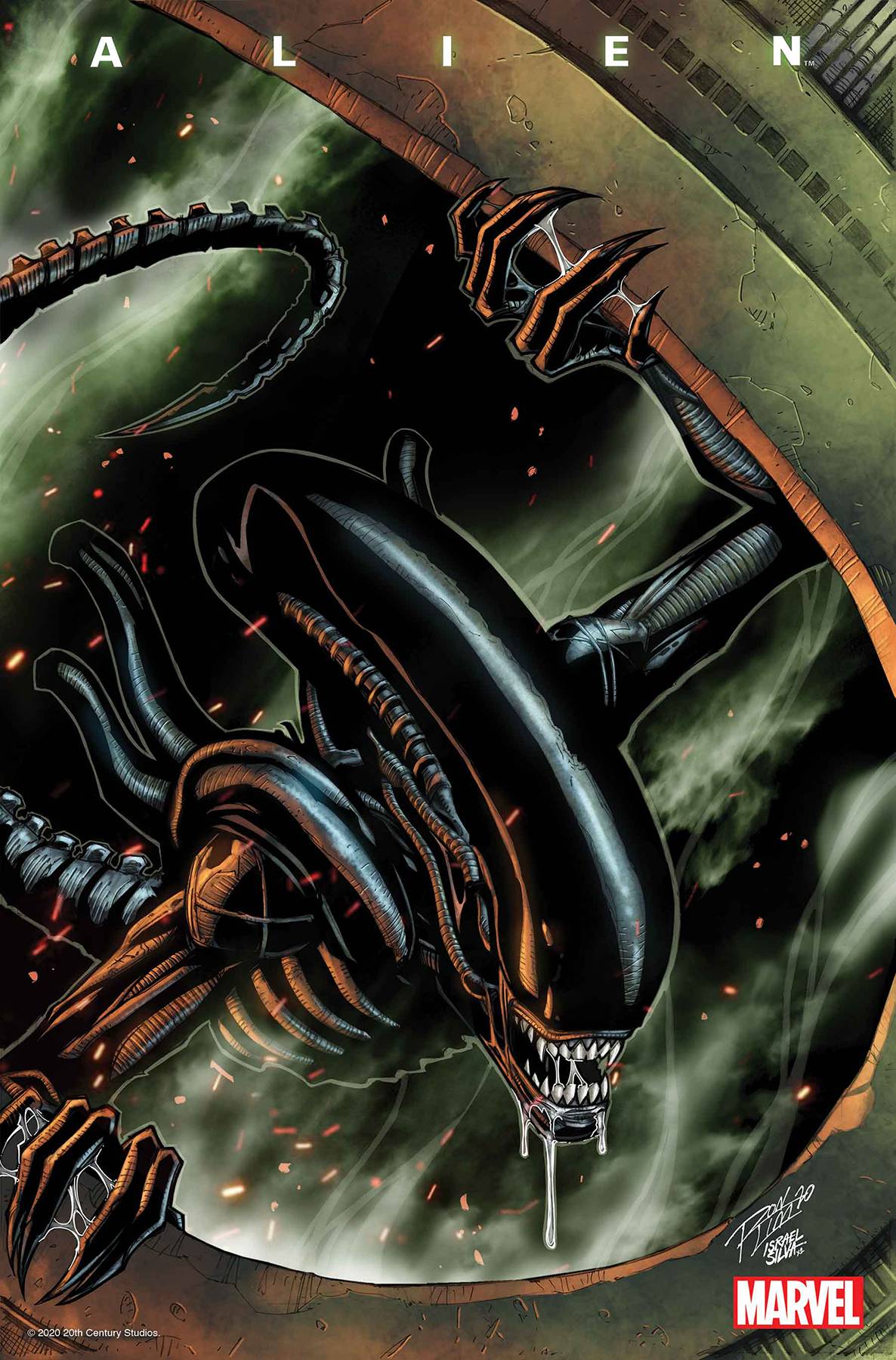From Marvel this week comes Alien #1! THE ICONIC CINEMATIC TERROR MAKES ITS MARVEL DEBUT! Gabriel Cruz gave his life to Weyland-Yutani--In the case of an alien attack he barely survived, almost literally! Recently retired, Cruz is trying to patch things up with his abandoned son with the help of his friend, a Bishop-model android, but his re-entry into civilian life is not going smoothly...and his encounters with the deadly Xenomorph are far from over. Phillip Kennedy Johnson and Salvador Larroca team up to tell an all-new tale of the titan of horror and science fiction that has scared audiences for decades. No one is safe. No one is innocent. And no one can hear you scream. Main cover by In Hyuk Lee, Black Blank variant, Finch Launch Party Variant, Gleason variant, Momoko variant, Nauck headshot variant, Ron Lim variant, Skottie Young variant. $4.99