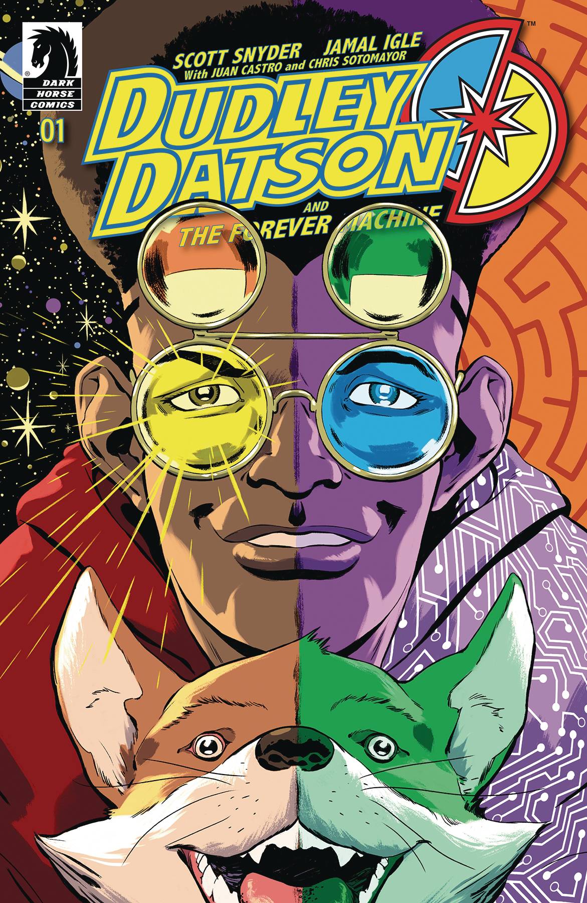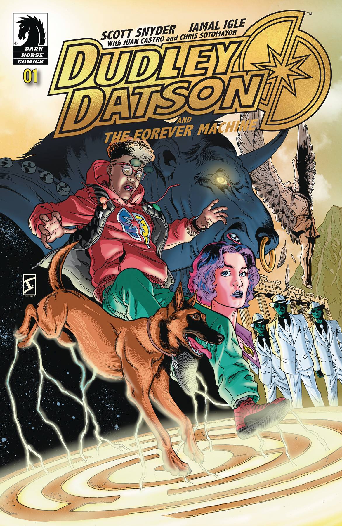 Dudley Datson #1! From New York Times-bestselling creators Scott Snyder and Jamal Igle comes this rollicking sci-fi adventure story about a boy, his dog, and a machine that controls time and space! What could go wrong? Have you ever wondered why all the great figures in history had a pet companion, and if they were all running from the same mysterious threat? Such questions have never crossed the mind of Dudley Datson, a fifteen year-old with a penchant for invention. But when dastardly foes turn his world upside down, Dudley is going to have to start facing things beyond his wildest imagination in this modern day fable.
