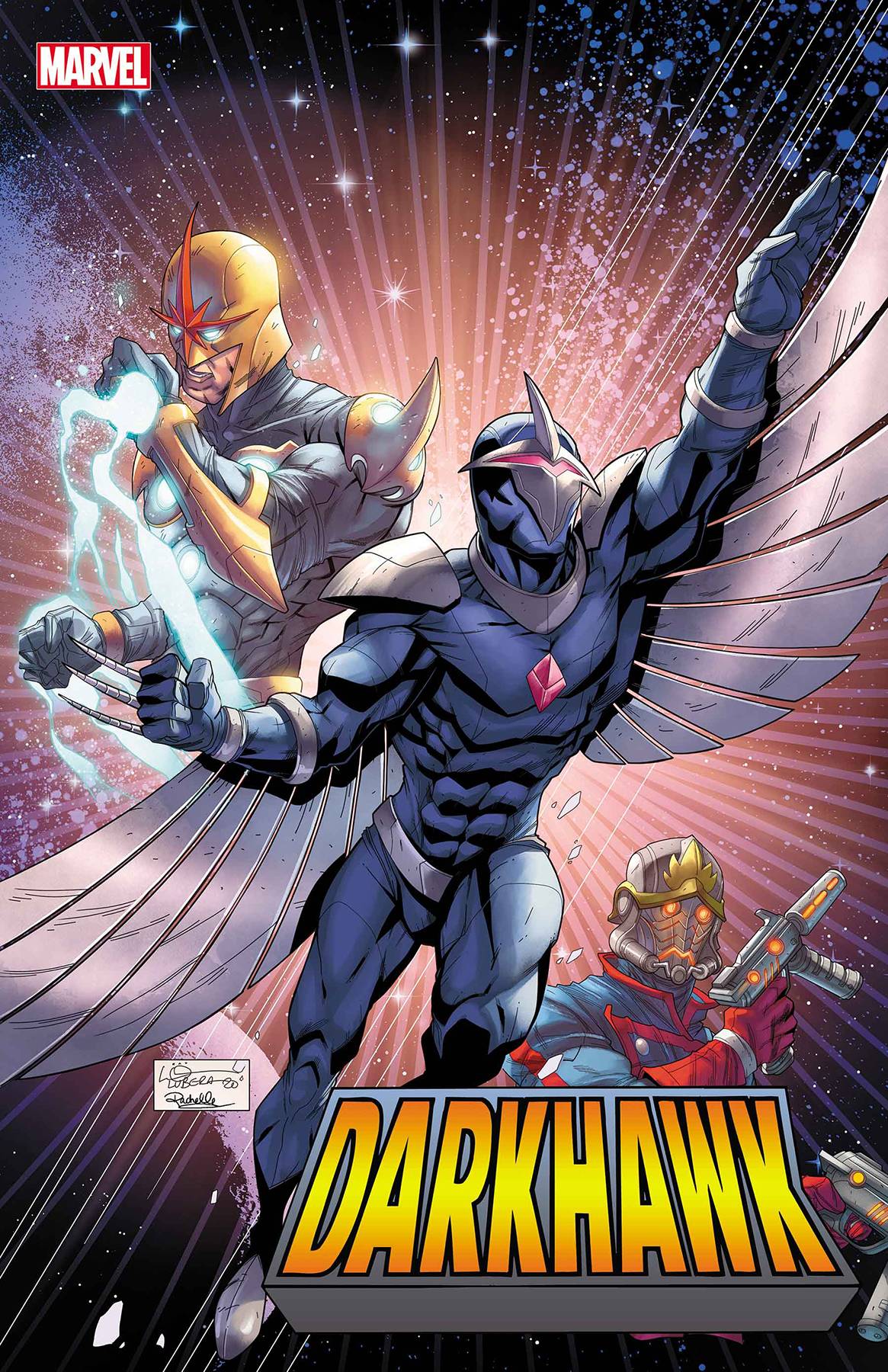From Marvel this week comes Darkhawk: Heart of the Hawk #1 (one-shot). Celebrate the 30th anniversary of the '90s hottest hero in three spectacular stories! First, an untold story from Darkhawk's early days by creators Danny Fingeroth and Mike Manley! Then explore the winged hero's cosmic years by Dan Abnett and Andrea Di Vito.Finally, find out what the future holds for Darkhawk by Kyle Higgins and more! Main cover by In Hyuk Lee, variant by Russell Dauterman, variant by Logan Lubera! $4.99