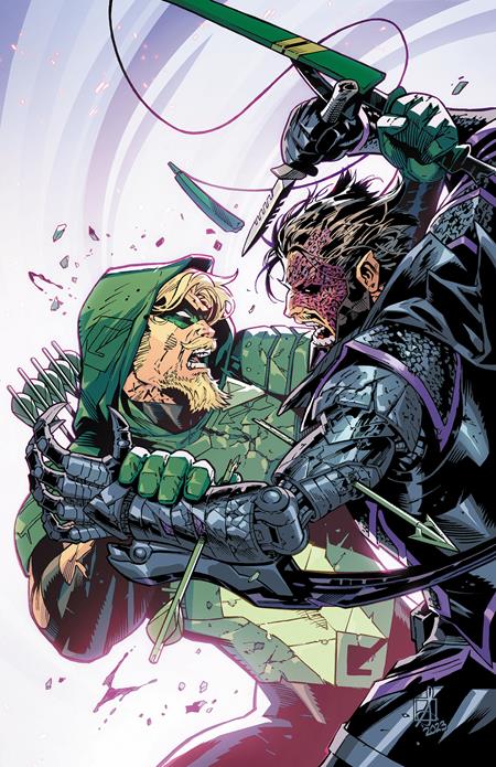 Green Arrow #11 (of 12)! Since Green Arrow #1, Merlyn has manipulated Oliver Queen and the Arrow family but after Green Arrow makes a deal with Waller, the final battle between the two archers is here! And whoever loses this shootout will be stranded forever!