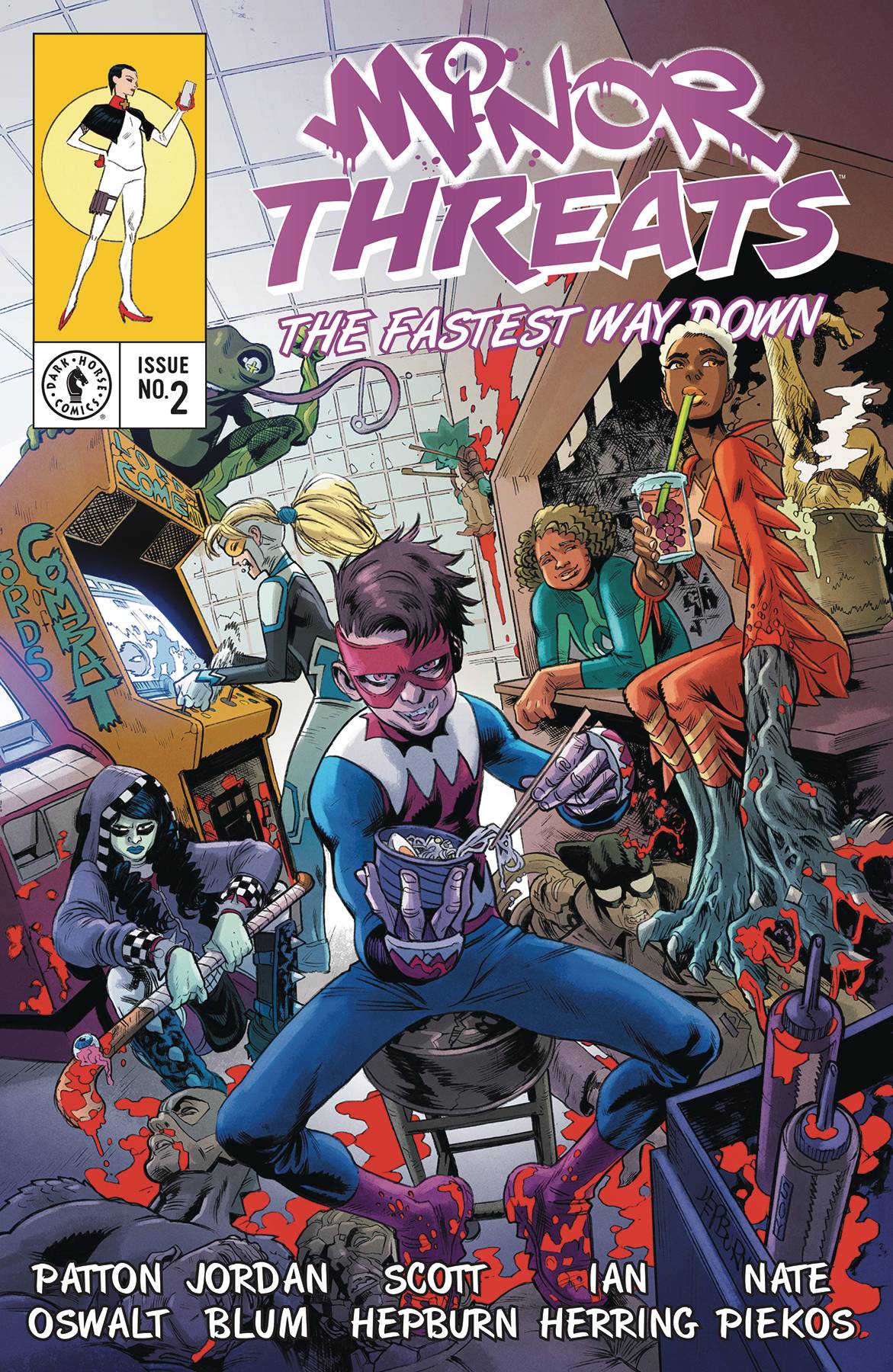 Minor Threats: Fastest Way Down #2! With Brain Tease out of the picture, the sadistic teen heroes, The Action, have set their sights on Frankie as they tear through Redport to uncover the truth about The Insomniac's death. Meanwhile Frankie's recent reckless behavior begins to jeopardize her criminal empire, putting her in direct conflict with her partner Scalpel. It's Minor Threat vs Minor Threat in a brutal rooftop battle for the ages. All that and "justice for Snakestalker" as the second arc of the Minor Threats saga continues…