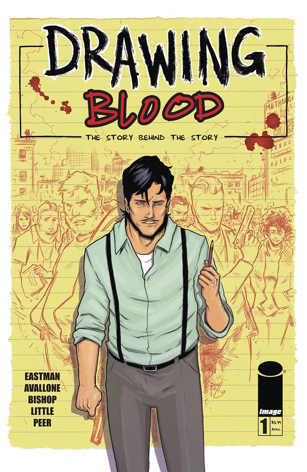Drawing Blood #1 (of 12)! KEVIN EASTMAN (TMNT) returns with a look into the roller coaster life of a successful comics creator. When you create a global franchise before you turn twenty... what happens next? Welcome to the world of Shane Bookman, a cartoonist whose real life has become more absurd than any comic book!