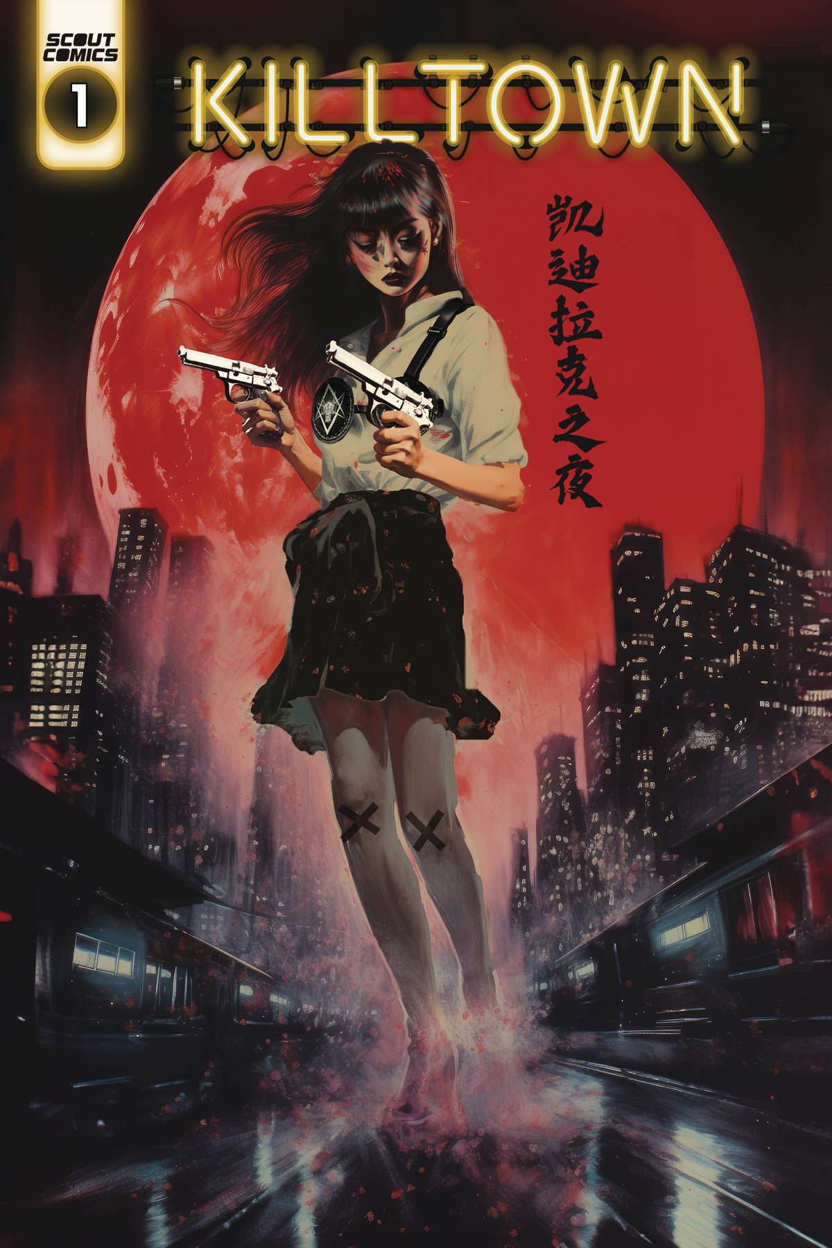 Kill Town #1! Full of horror-fueled action, Kill-Town is a spinoff series of the Night of the Cadillacs comic book series from Ex Posse. Street-savvy Min wants to make her mark in the world. However, she feels held back in her role as a money-runner with the Seven Stars Mob, the biggest crime syndicate in Koreatown, Los Angeles. When Min takes things into her own hands to usurp Vince, the notorious Seven Stars mob boss, her plan backfires. Min is shot execution style and left for dead. Full of horror-fueled action!