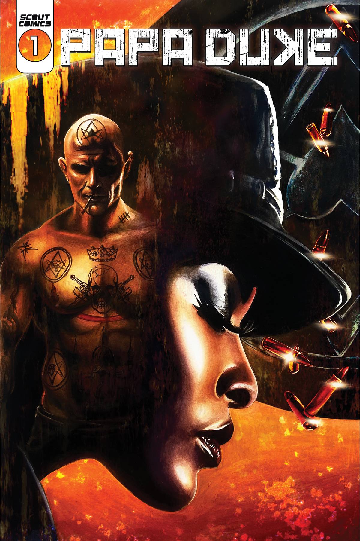 Papa Duke #1! Papa Duke is the feared ruler of Blood World and the psychopathic leader of the Night of the Cadillac gangs. He is the Thanos of the Night Of The Cadillacs universe! Assisted by his fiendish disciple Ives, Papa Duke positions the beautiful Mother Vega as the ultimate goddess-queen of his domain. But first, Papa Duke and Ives must destroy everything Mother Vega cares about-including her lover Cassandra