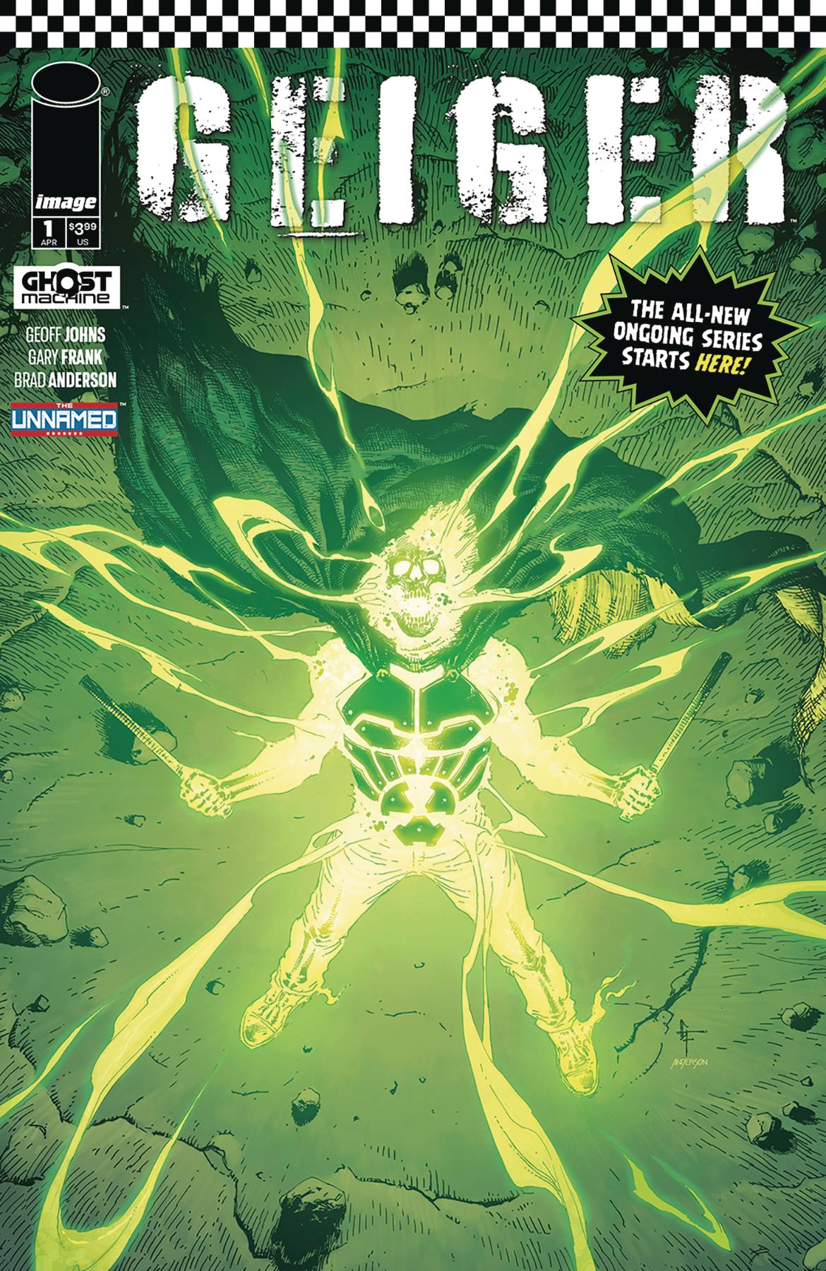 Geiger #1! The critically acclaimed team of storytellers GEOFF JOHNS and GARY FRANK return to the nuclear wasteland of GEIGER for an ALL-NEW ONGOING series starring the violent and unpredictable GLOWING MAN! Leaving his home behind, Tariq Geiger now walks the radioactive roads of the former United States with his two-headed wolf Barney. But as his enemies doggedly pursue him, Geiger discovers salvation from the unlikeliest of foes. But what secrets does this potential ally hold that could help Geiger? And exactly how many people are after The Glowing Man... and why? Don't miss this vital action-packed chapter in THE UNNAMED saga!
