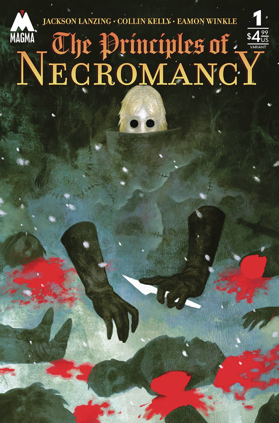 Principles of Necromancy #1! While brave knights and dangerous monsters wage endless war, business is booming for Dr. Jakob Eyes, a traveling physician whose arcane remedies are the closest thing to magic the world knows. These gruesome miracles are only stepping stones for Dr. Eyes' ultimate ungodly goal: to overcome death itself. And now, a band of decimated barbarians, desperate to bargain for their lives, may just make the ideal next test subjects...The phenomenal writing duo of Collin Kelly and Jackson Lanzing (Outsiders, Guardians of the Galaxy, Star Trek) return to creator-owned comics with this macabre series brought to life by the evocatively horrific art of Eamon Winkle. Each issue features a variant cover by Jana Heidersdorf (Dark Souls)!