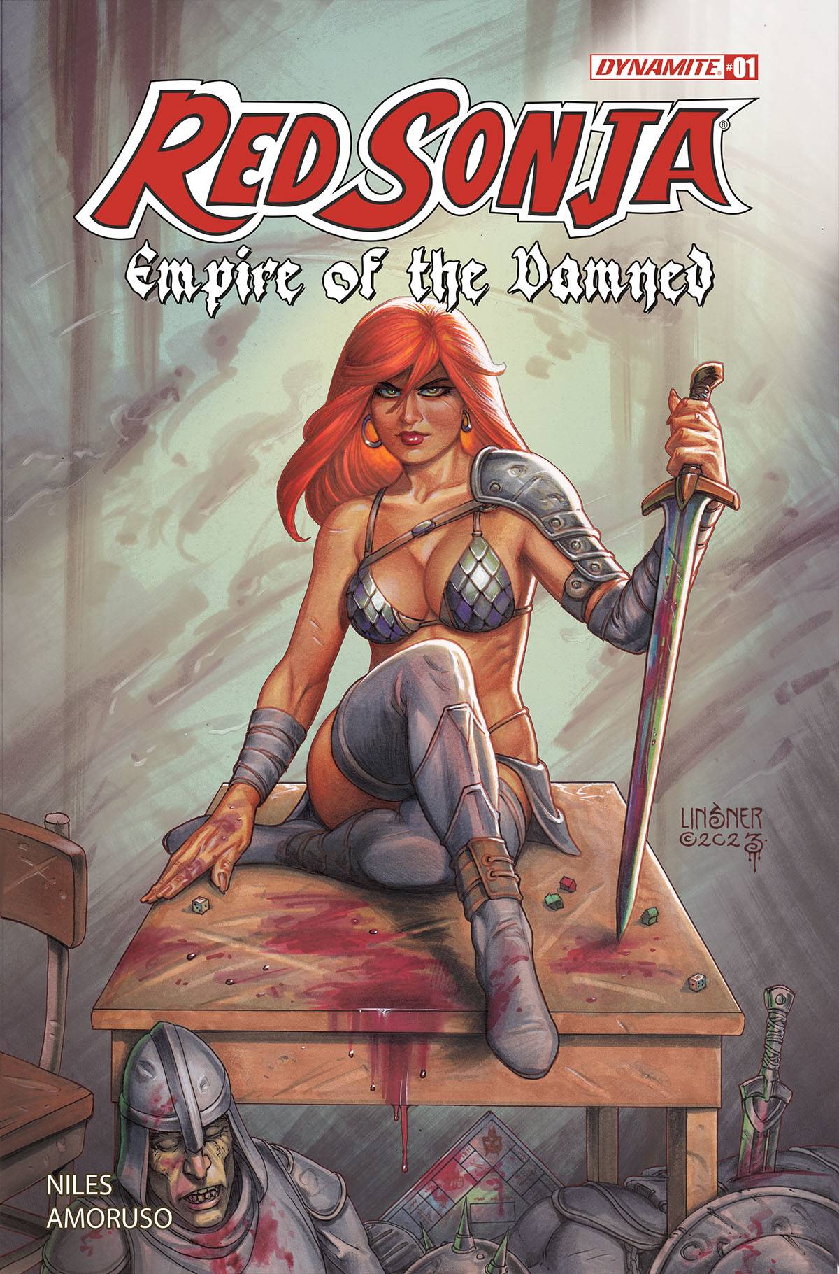 Red Sonja Empire of the Damned #1! After landing in jail following a night of drunken revelry, Red Sonja hears an outlandish story from a fellow inmate. Deep in the mountains lies a dead city in a valley with no name. Abandoned and forgotten, its fields and streets are littered with the bones of two armies, all destroyed by a curse from a warlock who has long since vanished, along with his vast treasure - untold riches just waiting to be taken. At least that is the legend. But Sonja's cellmate Morgo has more than a diverting tale - he's also got a map that says this legend could well be reality. All they need to do is break out of lockup and hit the road - which may be easier said than done!