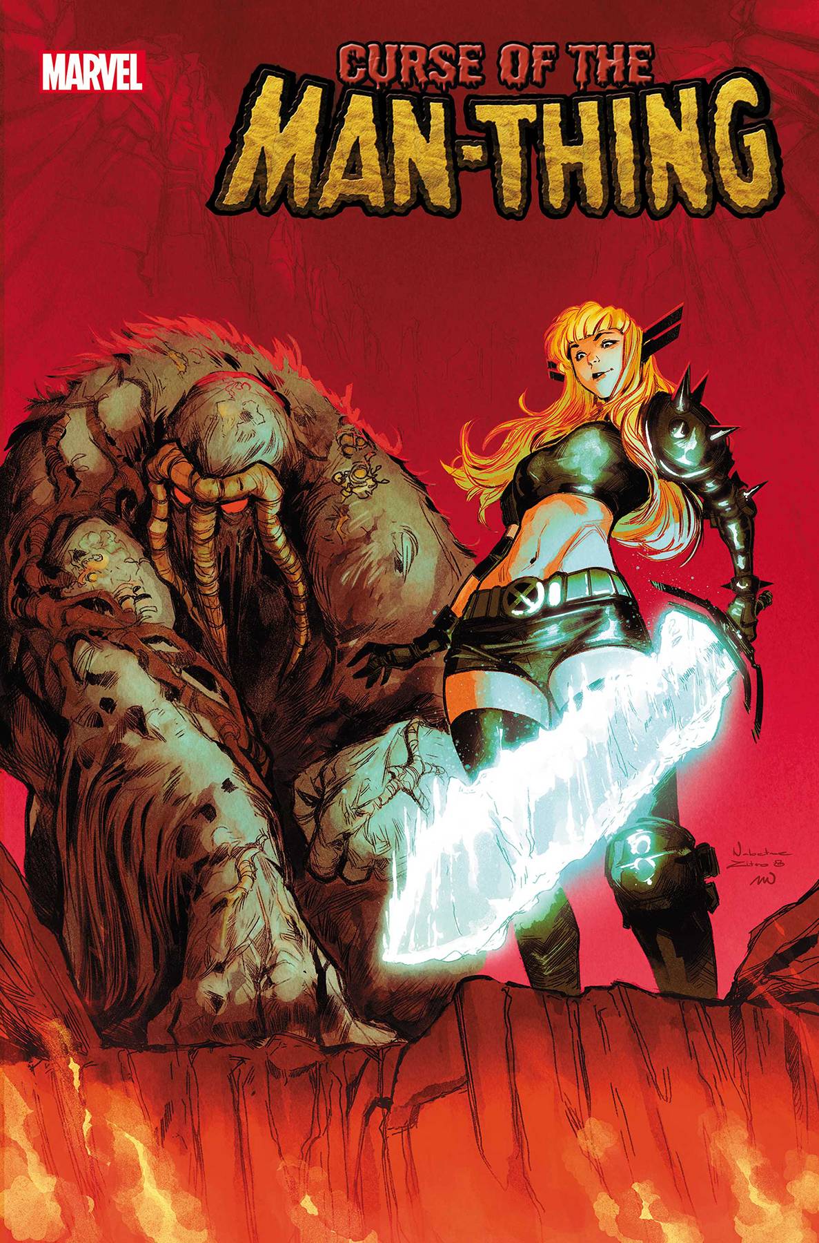 Next from Marvel comes X-Men Curse of the Man Thing #1 (One-shot). MAN-THING'S CURSE HAS BEEN REVEALED...BUT IT'S UNDER NEW MANAGEMENT! Years ago, DOCTOR TED SALLIS was ready to give up anything to crack the SO-2 serum and deliver success to his growing family. Unbeknownst to the rest of the world...he did. Today, as cities spanning from the U.S. to Krakoa are besieged by fear-driven blazes, the MAN-THING must reckon with his past deeds if he hopes to emerge renewed and rescue a world on fire. But fighting from his lowest means that Man-Thing can rise to his highest, especially with the unexpected help of the X-MEN'S resident sorceress MAGIK and her debuting team of monstrous mutants known as THE DARK RIDERS! Part 3 of 3! $4.99. Main cover by Daniel Acuna, variant cover by Nabetse Zitro!