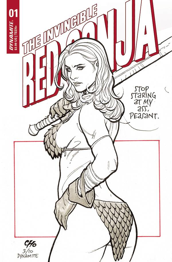 From Dynamite this week comes Invincible Red Sonja #1! Written by the award-winning fan favorites AMANDA CONNER and JIMMY PALMIOTTI, Red Sonja finds herself on a spectacular journey filled with pirates, mermaids, princesses, and political intrigue as the threat of two kingdoms hangs in the balance. All this, plus the spectacular art of MORITAT and a cover by AMANDA CONNER and PAUL MOUNTS makes THE INVINCIBLE RED SONJA a series not to be missed! In fact it's so great, we had to launch a whole new title for it! Cover A by Amanda Conner, Cover B by Joe Linsner, Cover C by Celina, Cover D by Frank Cho, Cover E Cosplay, Cover F Blank! $3.99