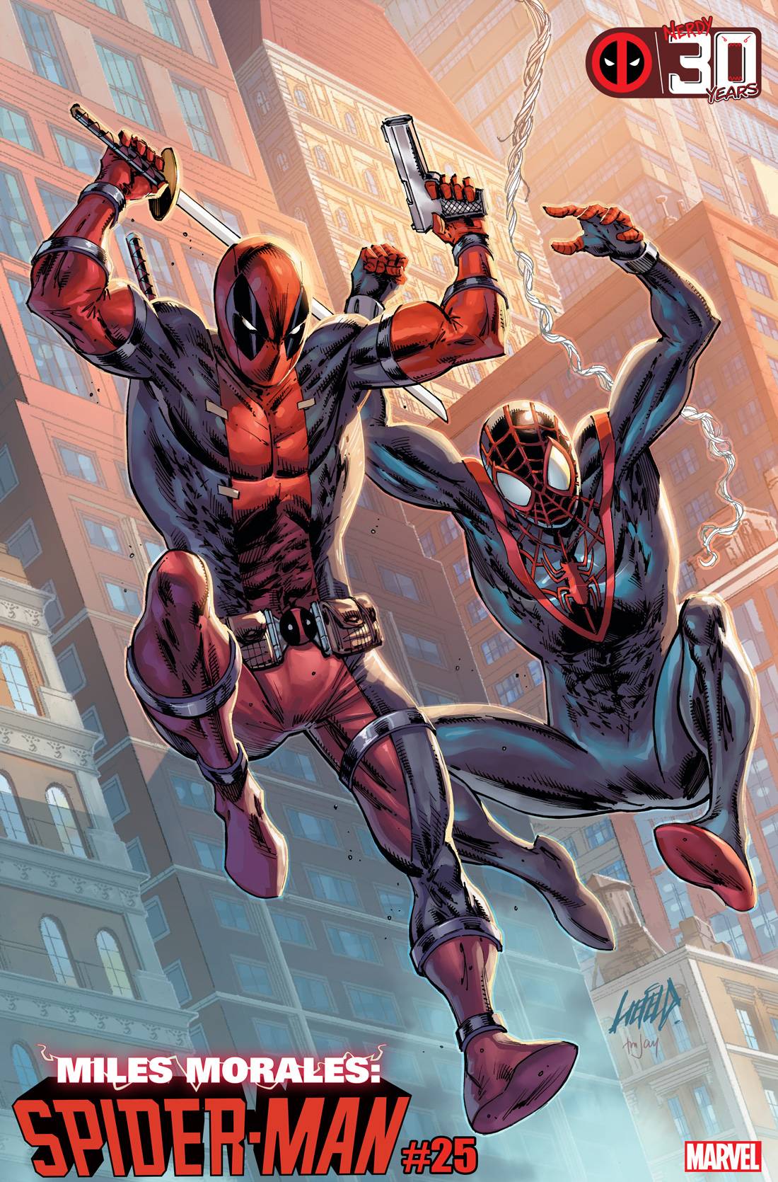 Next from Marvel this week comes Miles Morales Spider Man #25! THE CLONE SAGA - MILES MORALES-STYLE! We finally see the full extent of what the Assessor did when he kidnapped Miles back in #7. This oversized anniversary issue lets the clones loose in Brooklyn and messes with Miles life even more than Peter Parker's Clone Saga messed HIS life up. Main cover by Taurin Clarke, Bagley Skyline Variant, Deadpool variant by Rob Liefeld, Reborn variant by Carlos Pacheco, Jeffrey Veregge variant. $4.99