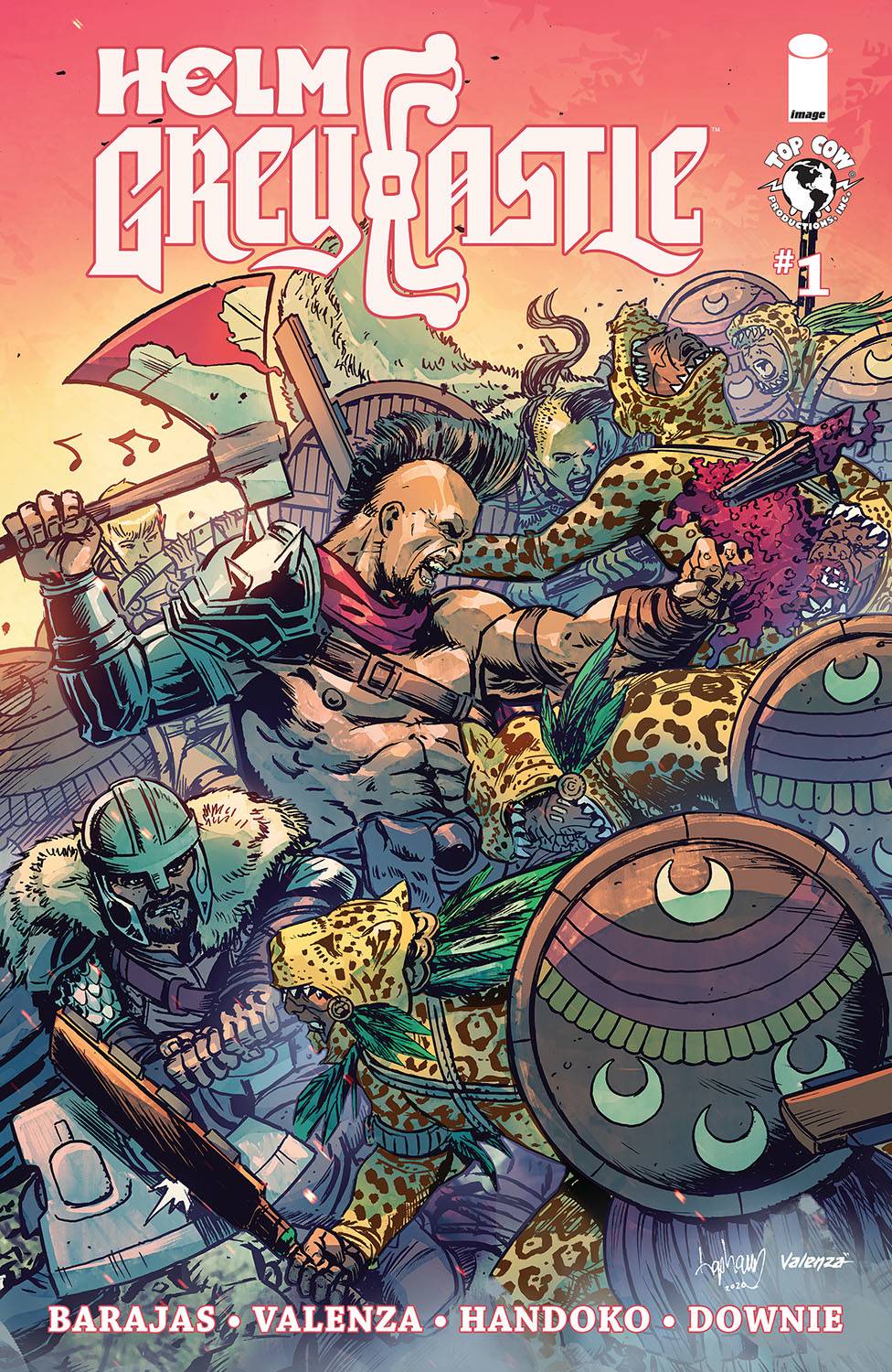 Next from Image this week comes Helm Graycastle #1 (of 4). New Latinx fantasy by HENRY BARAJAS, author of the critically acclaimed LA VOZ DE M.A.Y.O.: TATA RAMBO! The last dragon prince has been abducted-kept prisoner by an unknown threat: AZTEC MEXICA! Helm Greycastle and his outsider comrades are here to save the prince-but are recruited by a resistance plotting to overthrow Montezuma. Will Greycastle help save the people of MEXICA...or rescue the dragon prince and flee? BONUS! HELM GREYCASTLE #1 includes a Latinx one-shot RPG (5E compatible) written by TRISTAN J. TARWATER (Rolled & Told) and art by JEN VAUGHN. Cover A by Mirka Andolfo, Cover B by David Lapham, Cover C by Tony Parker, Cover D by Becky Cloonan!