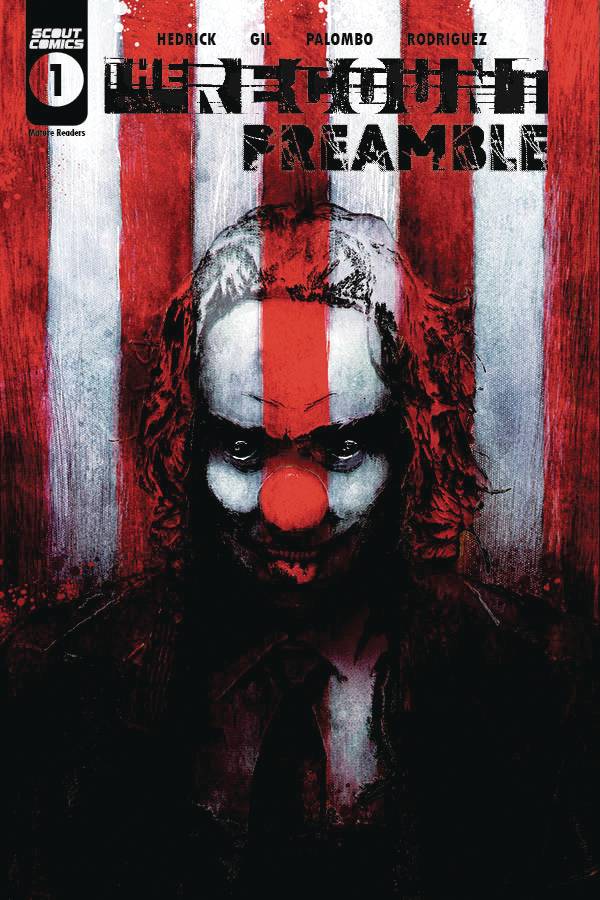 Recount Preamble #1! Scout's hit series is back! Set years before the shocking events of The Recount, Preamble details the life of Phil Pontus, the tragic death of his mother, his military service and subsequent decision to enter politics, his assent to the office of Vice President, and the terrible events that culminated in his assumption of leadership of a terrorist group known only as "The Masses." Cover by Gil Lopez! $5.99