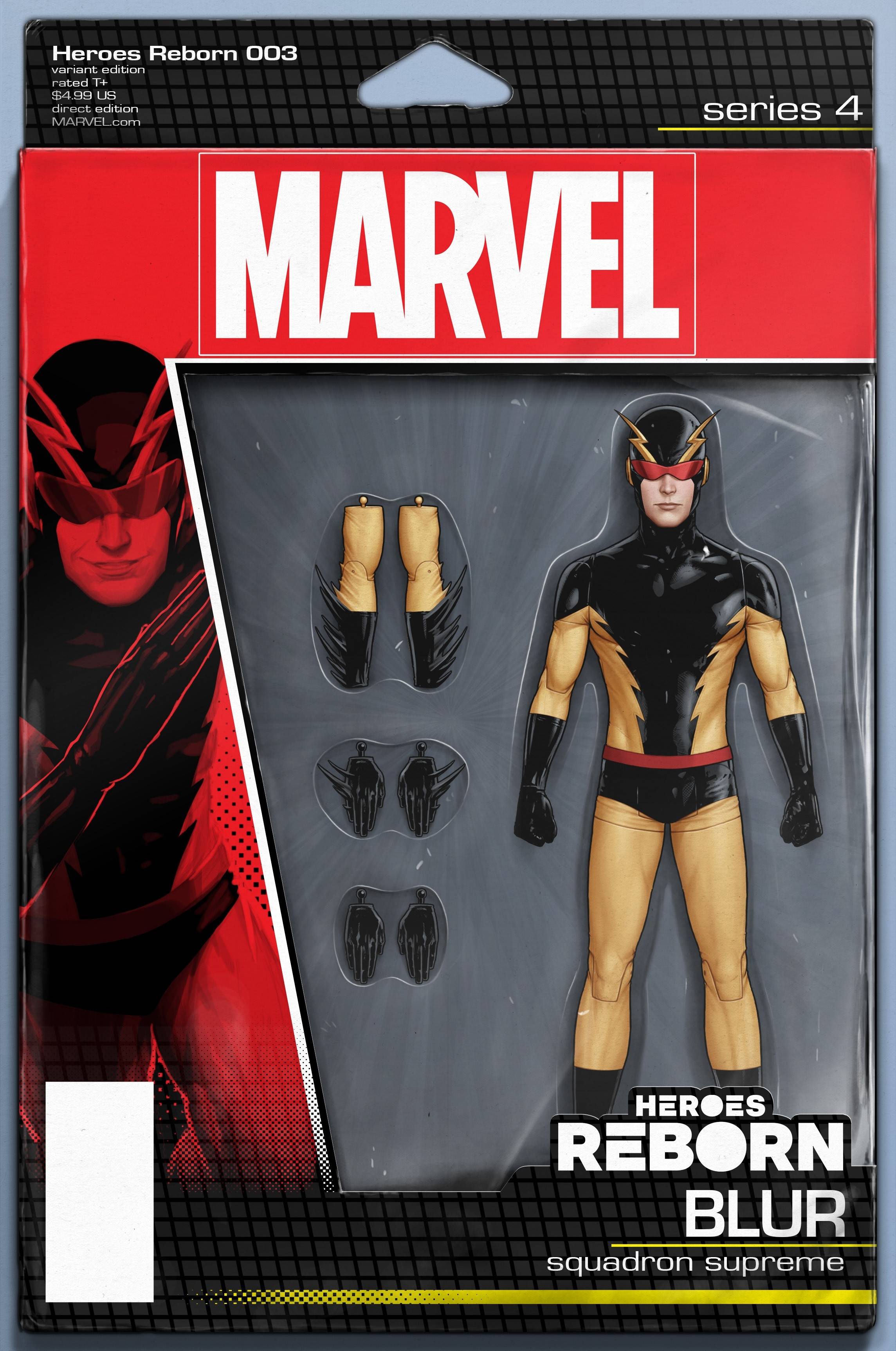 Next from Marvel comes Heroes Reborn #3 (of 7) (but its really 8!). Chaos magic at Mach 5! Blur, the swiftest mortal alive, must win a race through the mind-bending Dread Dimension in order to save his soul from the hypersonic hexes of the Speedster Supreme, the Silver Witch. Plus a back-up tale takes us inside the dark secrets of the Ravencroft Asylum and its newest inmate, the Phoenix. Main cover by Leinil Yu, variants by Mark Bagley Trading Card, Christopher Action Figure, Momoko Stormbreakers! $4.99