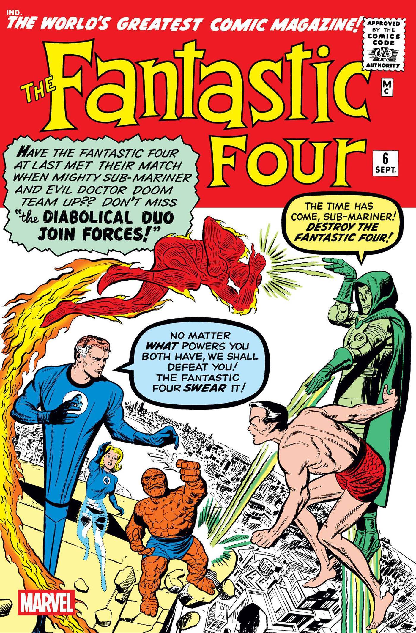 Fantastic Four #6 Facsimile Edition! The newly formed Fantastic Four barely withstood their first encounters with each of their powerful enemies, Doctor Doom and the Sub-Mariner. So what happens when Doom and Namor join forces? Find out as the armored tyrant tracks down the Sub-Mariner in his underseas kingdom, inciting him to seek vengeance on the surface world - and its accursed protectors, the Fantastic Four! But when it comes down to battle, just whose side will Namor be on? It's one of the all-time great Marvel comic books, boldly re-presented in its original form, ads and all! Reprinting FANTASTIC FOUR (1961) #6. Marvel is reprinting the first twelve issues of FANTASTIC FOUR as they originally appeared!