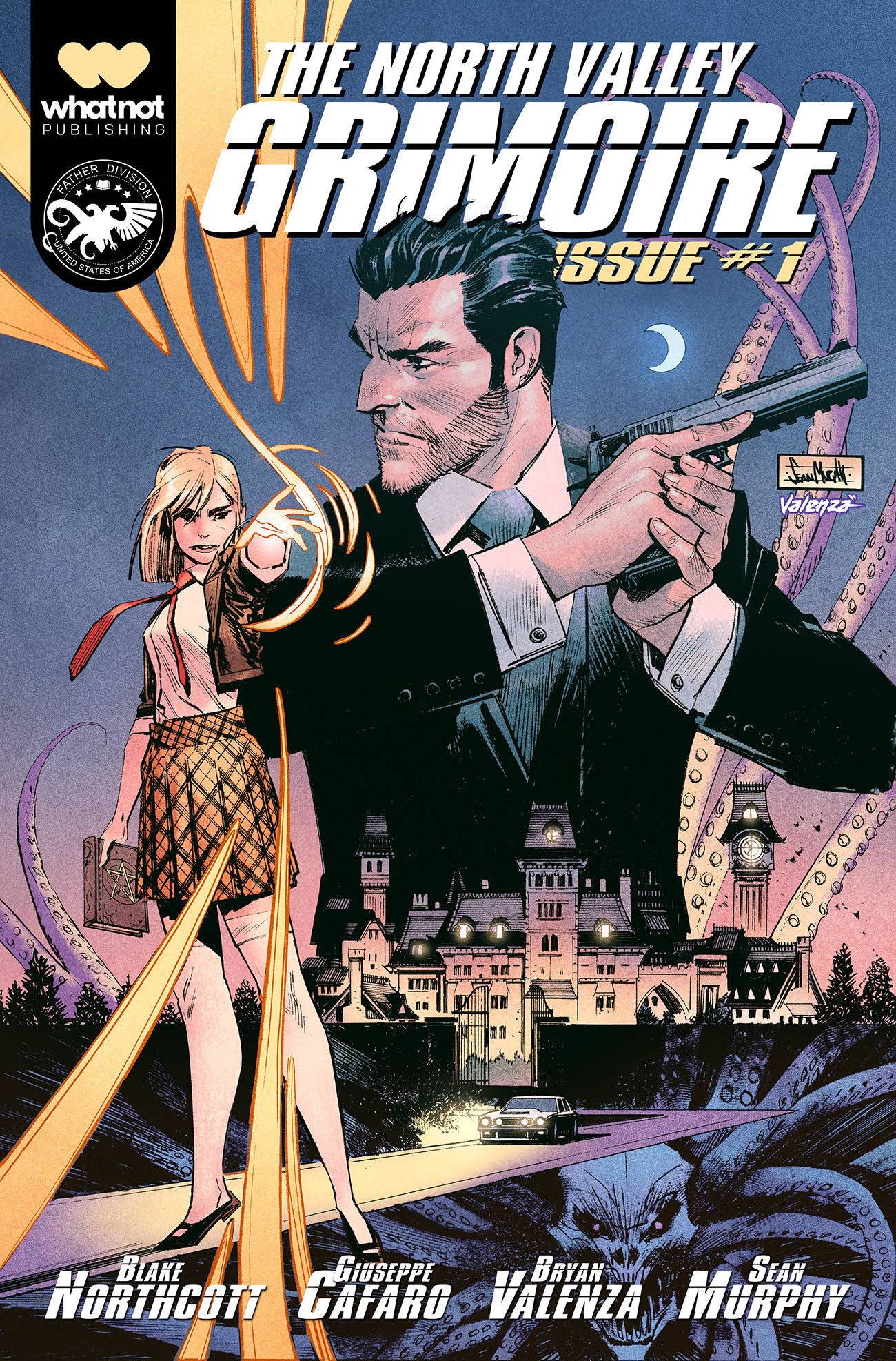North Valley Grimoire #1 (of 6)! SPYCRAFT MEETS SPELLCRAFT in North Valley: a slick, James Bond-style adventure fused with the supernatural suspense of The Magicians. In this thrilling debut, a CIA black-ops division clandestinely hunts - and eliminates - the most dangerous threat in history: MAGICK. On a routine assignment, Agent Malek discovers a grimoire more powerful than a nuclear weapon ... but when The Agency wants to recover the spellbook instead of destroy it, he begins to question their endgame. Written by bestselling author Blake Northcott (Catwoman) with art by Giuseppe Cafaro (Suicide Squad), The North Valley Grimoire is an enchanted tale of espionage like none other.