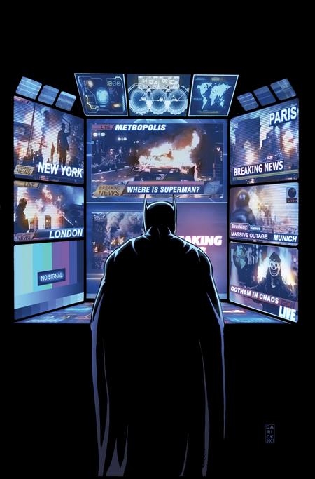 Batman: Fortress #1 (of 8)! When an unknown alien ship enters Earth’s atmosphere, disrupting global power and communications and plunging the planet into chaos, the world is left wondering…where is Superman when he is needed most? In the mysterious absence of the Last Son of Krypton, Batman must rally the rest of the Justice League to counter the alien threat...but first, he must quell a crime wave on the blacked-out streets of Gotham! Gary Whitta (Rogue One: A Star Wars Story) and Darick Robertson (The Boys) have joined forces to tell a brutal and shocking adventure that will turn everything you think you know about Superman upside down! Cover A by Darick Robertson, Cover B by Doaly! $3.99/$4.99