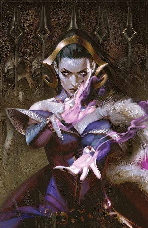 Magic Hidden Planeswalker #2 (of 4)! Liliana's hunt for the mysterious planeswalker begins! She races to the legendary hero's home plane, determined to find her before the Master of Metal twists her unique powers to his terrible purposes. But this dangerous new plane holds secrets of its own, and eyes frozen shut will open for the first time in fifty years...Cover A by Karen Darboe, Cover B by Valentina Remenar, Cover C connecting by Miguel Mercado! $4.99